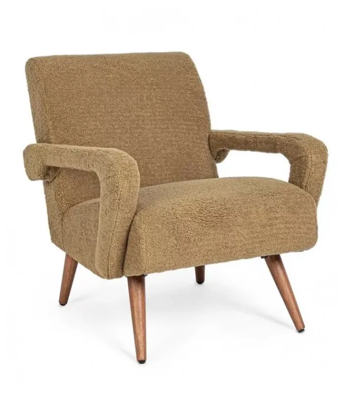 STRUTTURA IN LEGNO DI PINO E COMPENSATO. GAMBE IN RUBBERWOOD CON PIEDINI REGOLABILI IN PLASTICA. RIVESTIMENTO IN POLIESTERE EFFETTO LANA. DENSITA’ IMBOTTITURA IN SCHIUMA POLIURETANICA 24 KG/M3. NON SFODERABILE. GAMBE DA ASSEMBLARE. – DIMENSIONI IN CM. 65 (L.) 79 (P.) 74 H – 45 ( H1) 54 H2