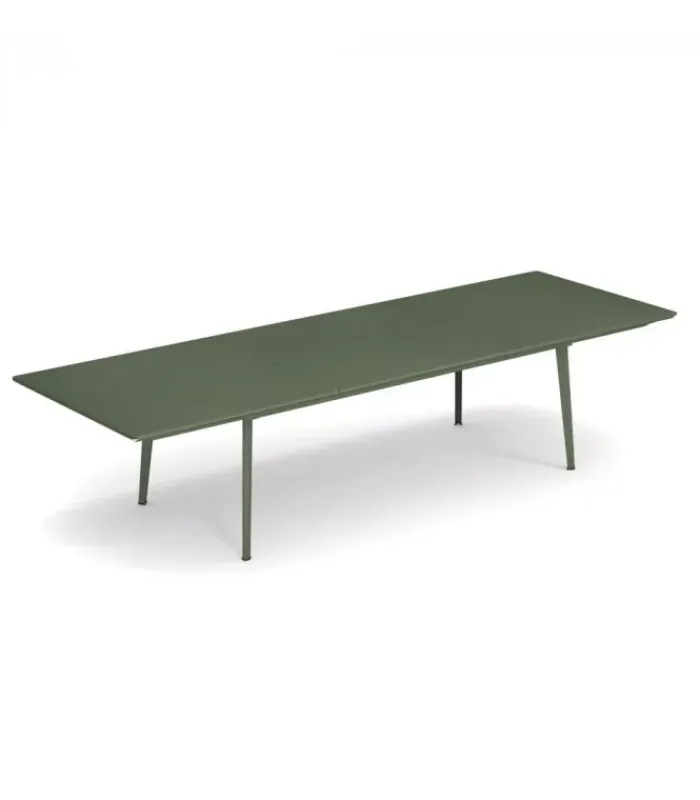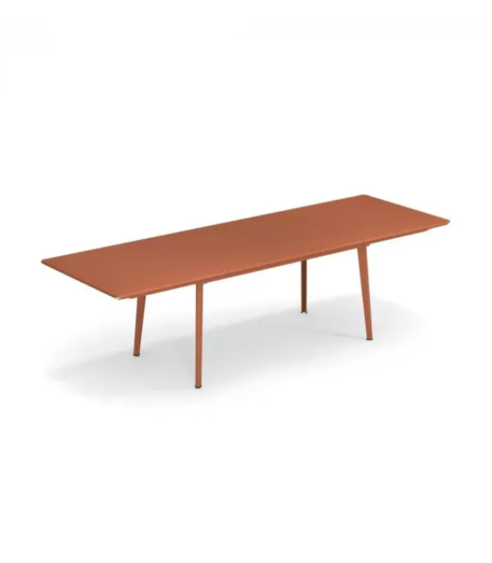 Tavolo allungabile con struttura in acciaio verniciato e piano in lamiera pre zincata a caldo e verniciata, disponibile in moltissimi colori.