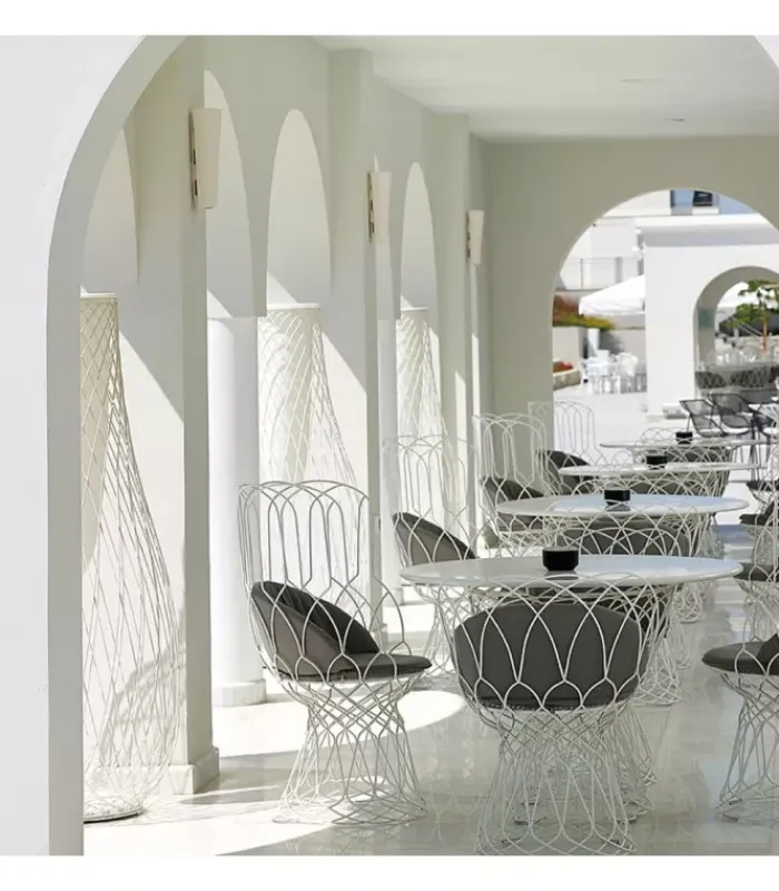 La collezione Re-Trouvé trae origine da forme tradizionali, riscoperte e reinterpretate con ironia ed originalitá da Patricia Urquiola. Gli arredi Re-Trouvé esprimono la loro eleganza e personalitá sia in contesti classici che in ambientazioni contemporanee. Disegni geometrici a losanghe ripetute creano forme insolite e accattivanti. Re-Trouvé si inserisce in modo naturale in ogni ambiente outdoor.