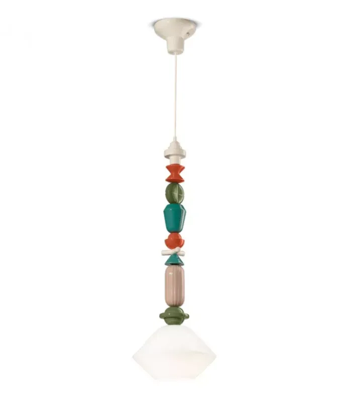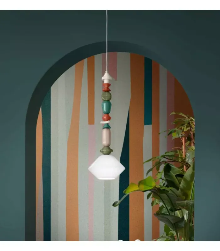 Design sofisticato: La lampada sospensione Lariat si presenta con un design raffinato in ceramica smaltata, che cattura l’attenzione con la sua bellezza e artigianalità.