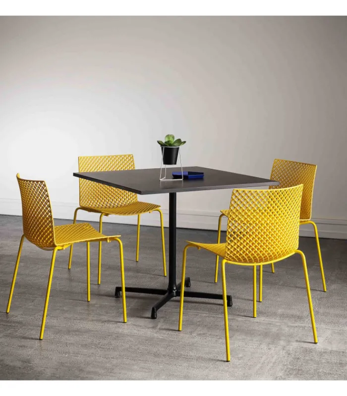 Sedia FULLER disponibile con o senza braccioli. Struttura a 4 gambe in metallo verniciata, la seduta è in tecnopolimero.