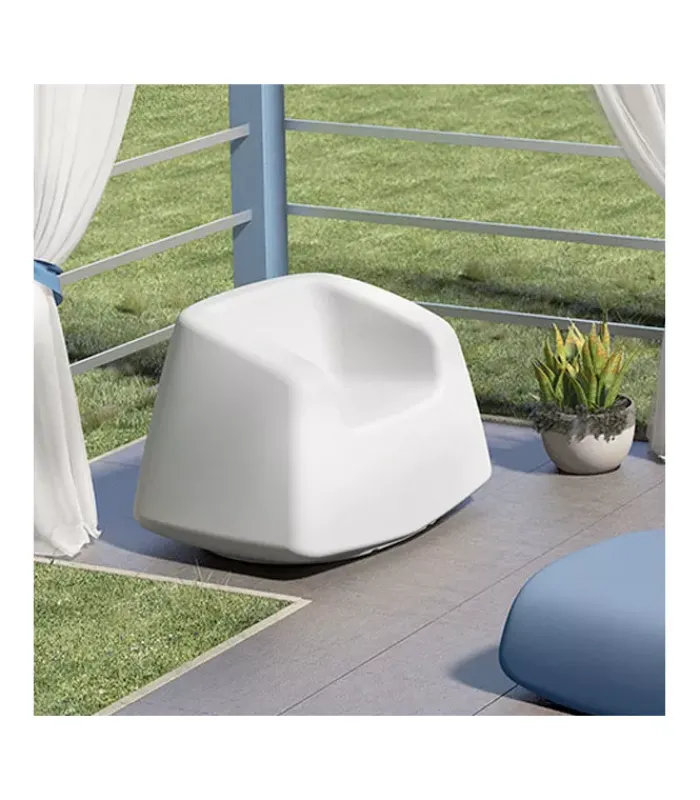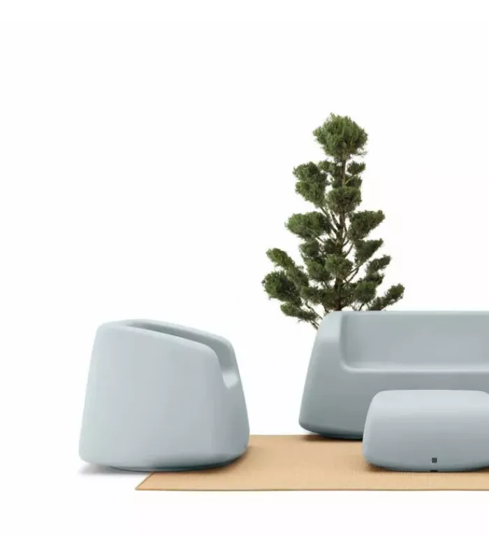 Il divano e la poltrona sono realizzati in polietilene, un materiale facile da pulire e resistente agli agenti atmosferici, ai raggi UV e agli urti. Il foro per il drenaggio dell’acqua piovana e la leggerezza del materiale li rendono perfetti per un utilizzo pubblico.