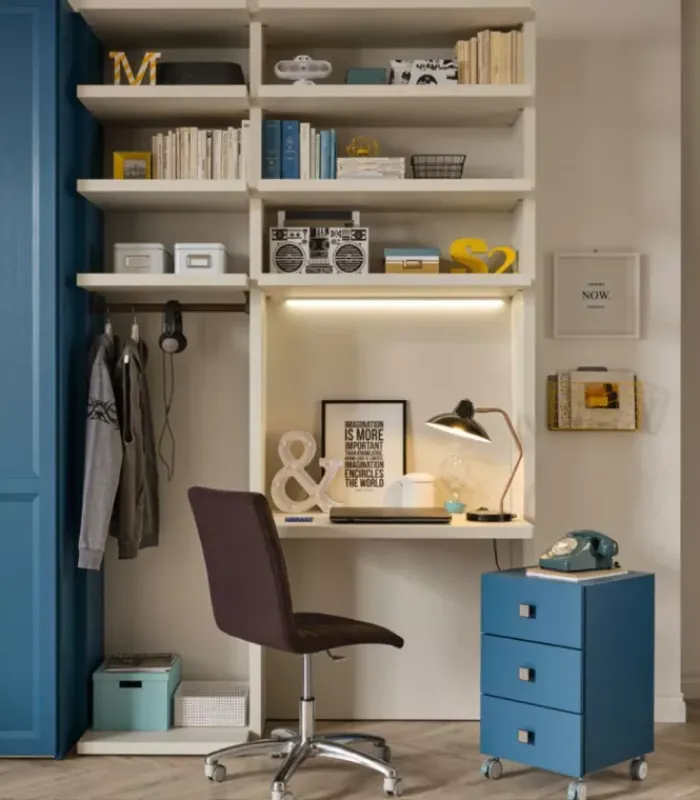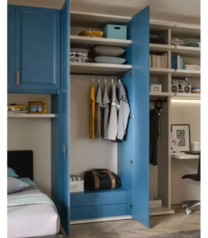 La camera da letto è completa di mobili coordinati realizzati in legno laccato o melaminico di alta qualità. Questi materiali garantiscono bellezza e resistenza a lungo termine.