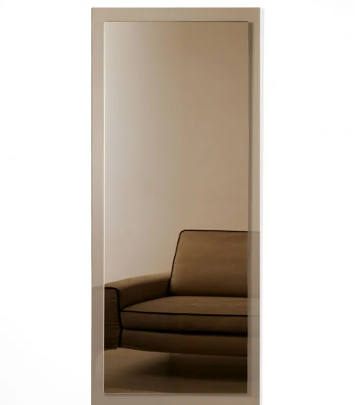 La cornice in vetro trasparente fumè o bronzo tono su tono con lo specchio crea un effetto visivo elegante e sofisticato, mentre la robusta struttura di sostegno in alluminio garantisce stabilità e durata nel tempo. Elodie non è solo un elemento decorativo, ma anche una scelta pratica e di alta qualità, rigorosamente made in Italy.