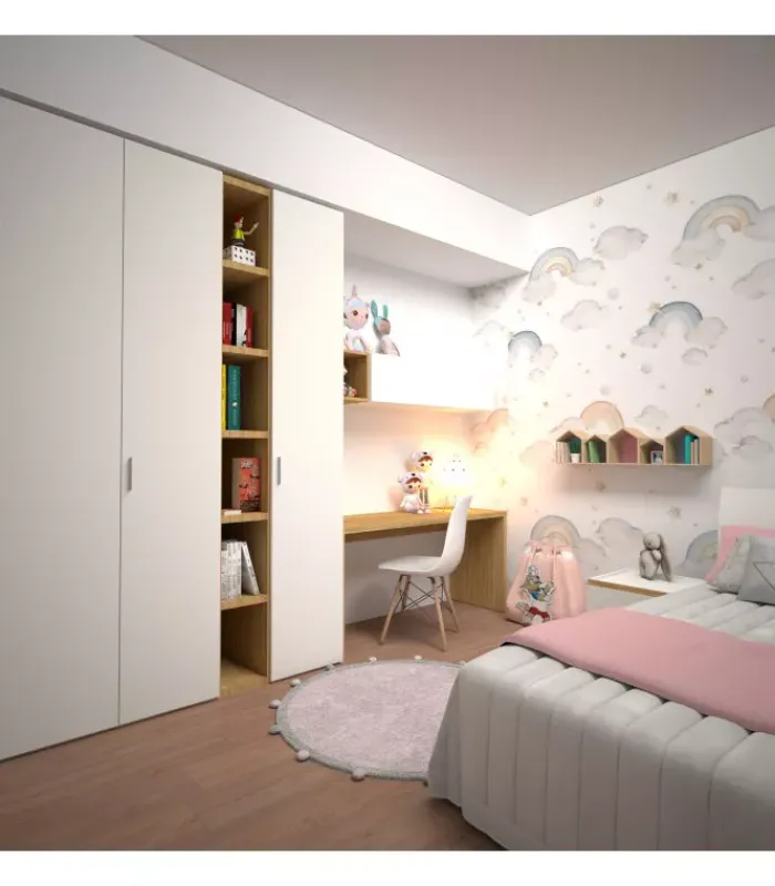 Con una varietà di soluzioni di archiviazione intelligenti, tra cui ampi armadi, cassettiere e libreria, la cameretta YUNG 01 aiuta a mantenere in ordine giocattoli, vestiti, libri e tutto ciò di cui i vostri bambini hanno bisogno. Inoltre, il design ergonomico dei mobili assicura comfort e praticità nell’utilizzo quotidiano.