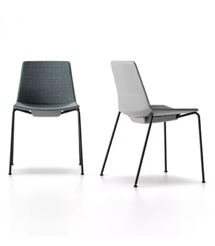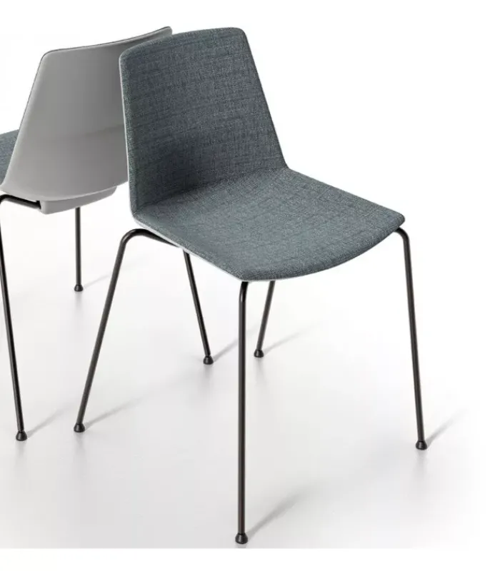 Sedia di design con struttura in polipropilene grigio e gambe in titanio metallico. Disponibilità di rivestimento interno di seduta e schienale con un’ampia gamma di tessuti, tra cui il cotone riciclato Urbino.