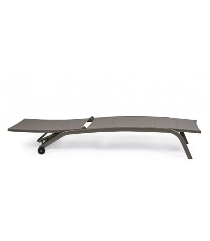 STRUTTURA IN ALLUMINIO, VERNICIATO A POLVERE (POLIESTERE). RIVESTIMENTO IN TEXTILENE 2X1 (CON IMBOTTITURA). SCHIENALE RECLINABILE IN 5 POSIZIONI. RUOTE IN PLASTICA. VITERIA IN ACCIAIO GALVANIZZATO. IMBALLO SENZA CARTONE. – DIMENSIONI IN CM. 61 (L.) 192 (P.) 96 ( H.) 30 ( H1)