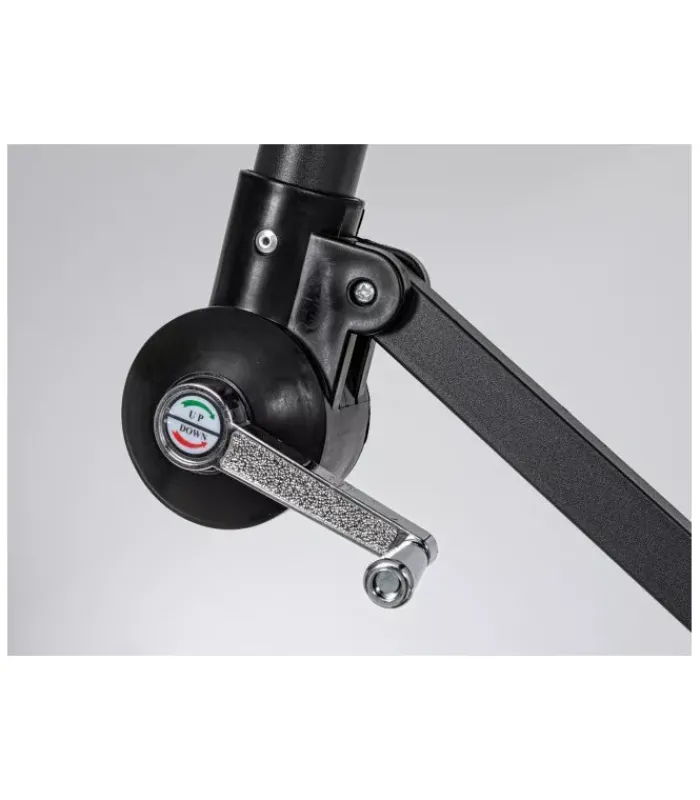 STRUTTURA IN ACCIAIO VERNICIATA A POLVERE(POLIESTERE). PALO Ø48MM. PALO SOSPESO Ø42MM. 6 STECCHE 12X18MM. TELO COLOR TORTORA IN POLIESTERE 180GR/M2 CON CAMINO ANTIVENTO. BASE A CROCE IN ACCIAIO. PALO GIREVOLE 360°MANUALMENTE. MARMETTE NON INCLUSE – DIMENSIONI IN CM. 300 (L.) 200 (P.) 260 H