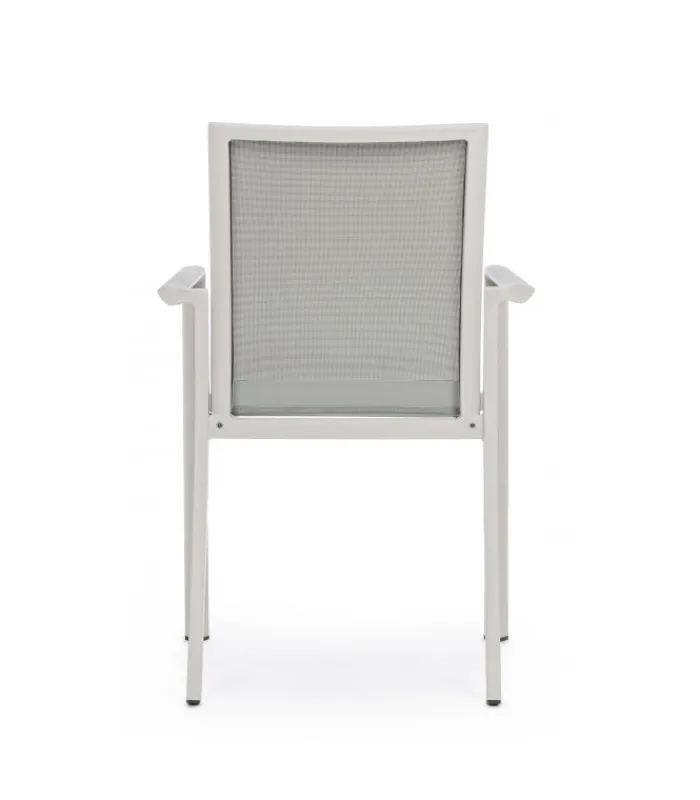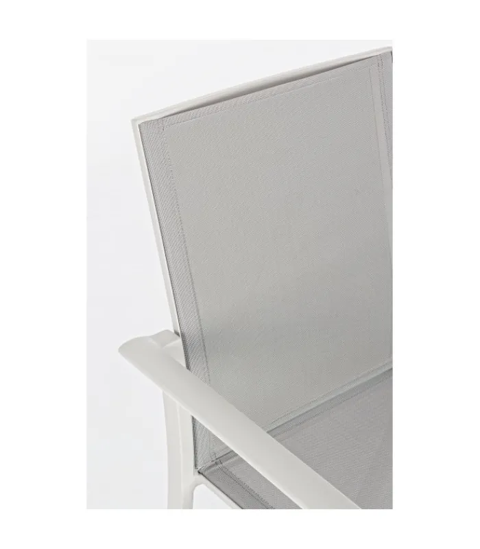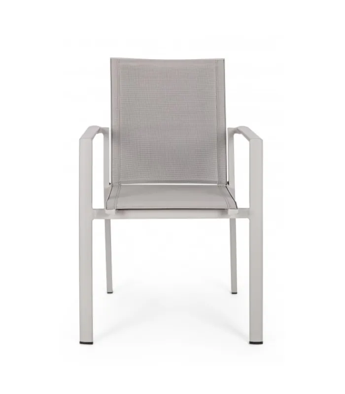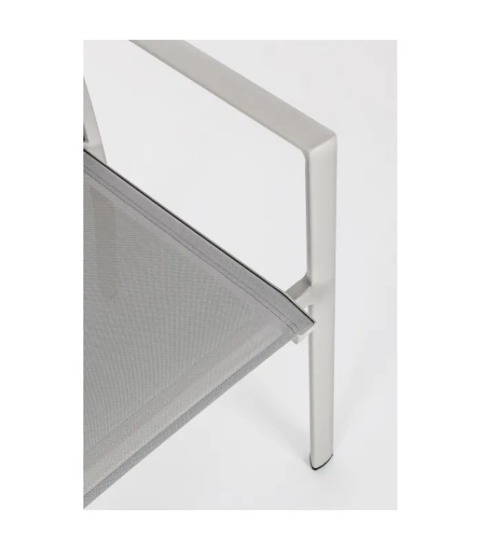 STRUTTURA IN ALLUMINIO, VERNICIATO A POLVERE (POLIESTERE). SEDUTA E SCHIENALE IN TEXTILENE 1X1. IMPILABILE.