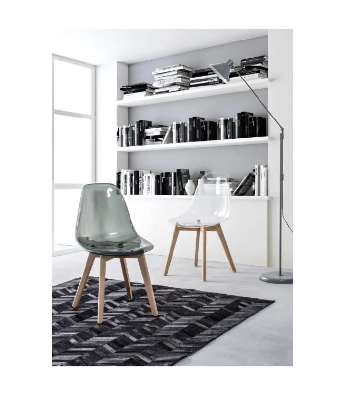 SEDUTA E SCHIENALE IN POLICARBONATO (PC). GAMBE IN LEGNO DI FAGGIO DA ASSEMBLARE.