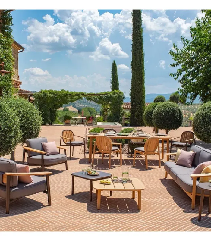 La collezione Twins racchiude due versioni gemelle: una interamente in teak e l’altra un interessante material-mix tra il teak e l’alluminio, sintesi perfetta della capacità progettuale del designer e il saper fare di EMU. Una collezione di sedute, tavoli e divani che annulla i confini tra esterno ed interno, la cui unicità permette di creare i più svariati abbinamenti sia tra le due versioni che con le altre collezioni EMU.