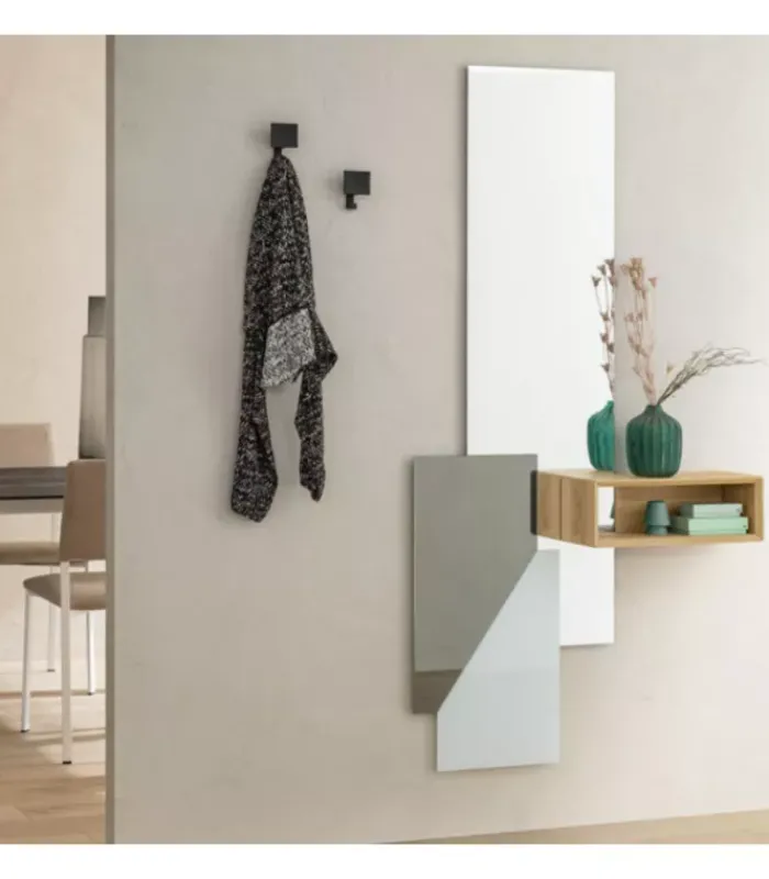 Specchiera liscia a forma rettangolare. Appendini in metallo pressofuso.