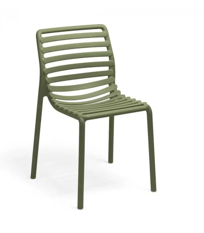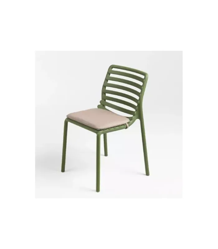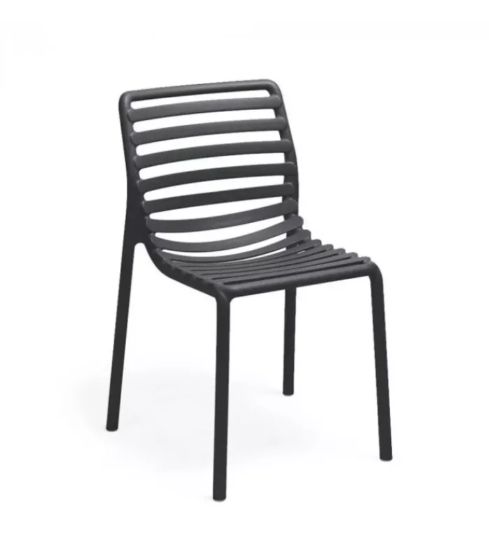 Sedia monoblocco senza braccioli. Materiale: polipropilene fiberglass trattato anti-UV e colorato in massa. Impilabile. Finitura opaca. Dotata di piedini antiscivolo. Cuscino disponibile su ordinazione. Resina riciclabile.