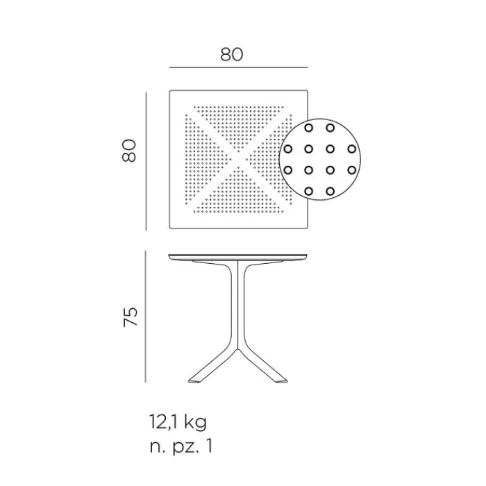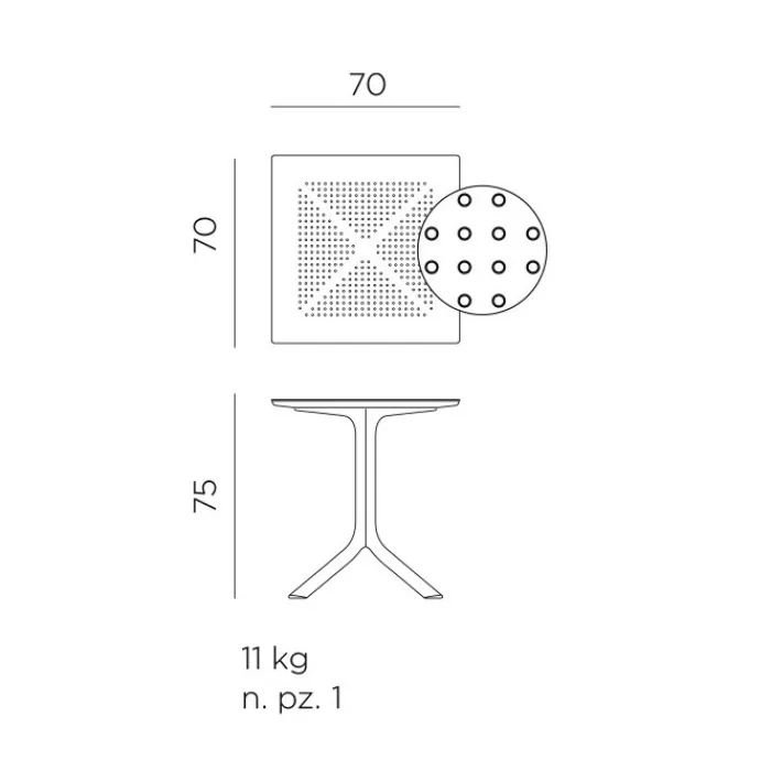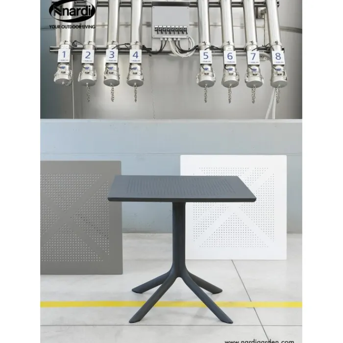CLIP, tavolo quadrato in polipropilene colorato per esterni, Solido, allegro e funzionale, sono le caratteristiche principali di questo tavolo dalle dimesioni contenute.