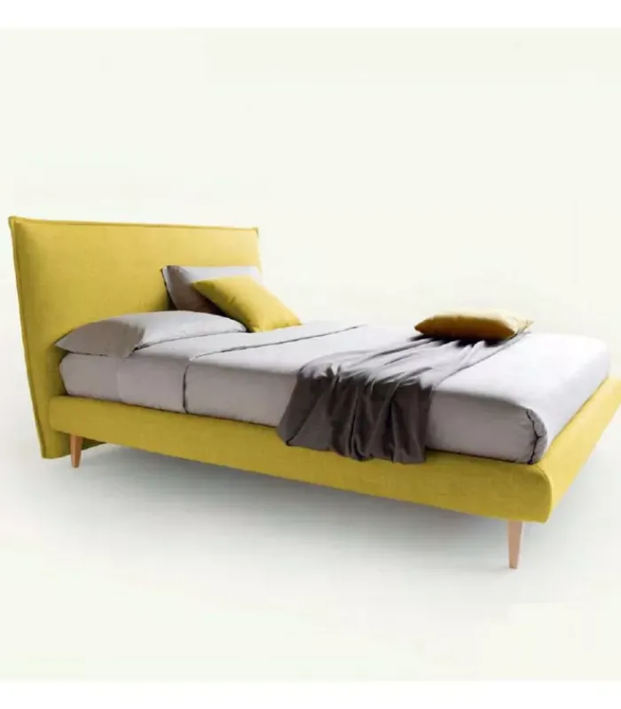 Letto BOB H17 disponibile con contenitore o fisso, include una rete ortopedica a 14 doghe da 65 mm ciascuna in legno di betulla. Le versioni 160 e 180 hanno un doppio palo di sostegno centrale. I piedini sono in legno disponibili in diverse forme, dimensioni e misure. È imbottito e rivestito con tessuti sfoderabili.