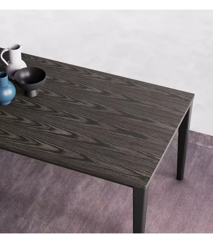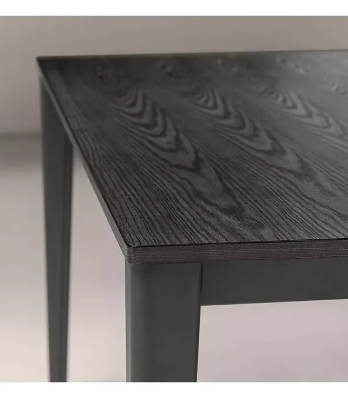 Il piano del tavolo è realizzato con un impiallacciato di alta qualità, che offre una superficie liscia e uniforme. Con uno spessore di 2 cm, il piano è robusto e resistente, garantendo una durata nel tempo. Potrai godere di un’esperienza di utilizzo piacevole e confortevole.