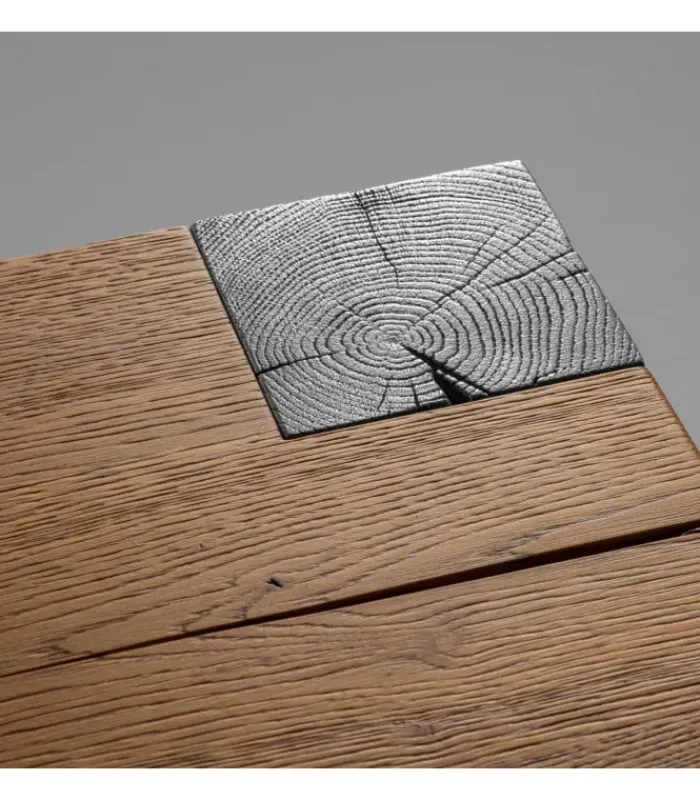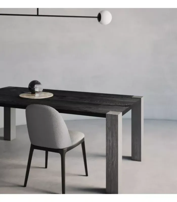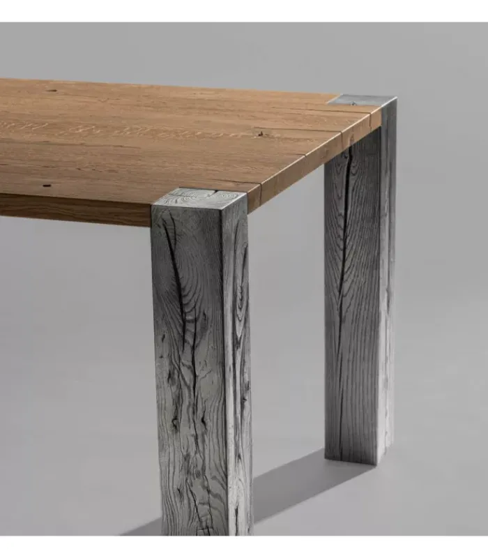Il piano del tavolo è realizzato in listellare, un materiale di alta qualità che conferisce un aspetto sofisticato e resistente. Le gambe, realizzate in massello impregnate in metallo, donano un design unico e moderno, perfetto per ogni ambiente.