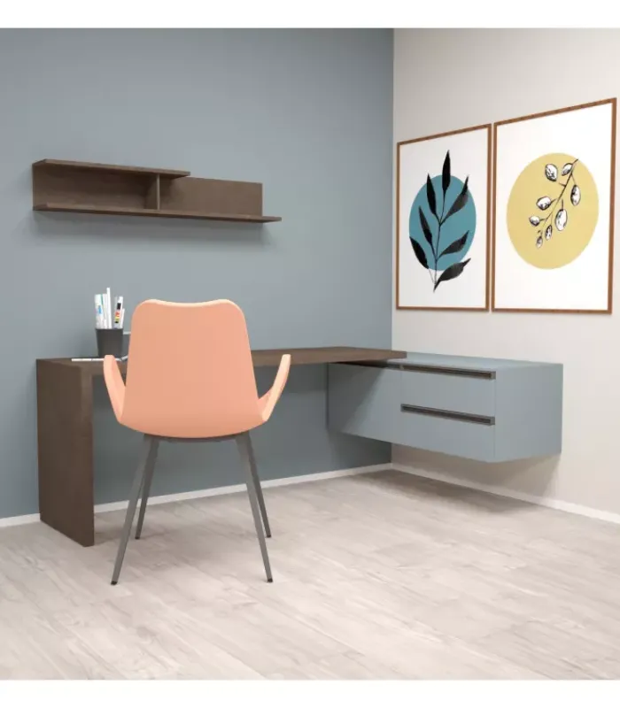 La Cassettiera Ego con scrivania, è un elegante complemento d’arredo sospeso che unisce funzionalità e design moderno. Questo modello comprende un modulo con cassetti e anta, ideale per mantenere in ordine tutti i tuoi documenti e oggetti personali. La scrivania ad angolo offre un ampio spazio di lavoro, perfetto per chi necessita di un’area organizzata e ben strutturata.