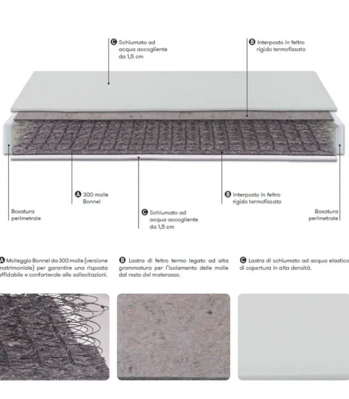 300 molle Bonnel per una distribuzione omogenea del peso e una portanza sostenuta.