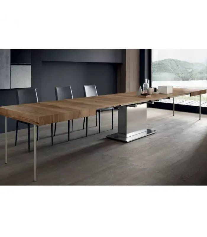 L’apertura centrale del tavolo aggiunge un tocco di innovazione al suo design, facilitando il processo di allungamento e garantendo una distribuzione uniforme dello spazio. Ogni dettaglio del Tower Maxi è curato con attenzione, riflettendo l’artigianato italiano di alta qualità.