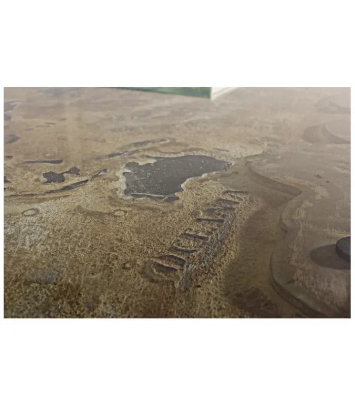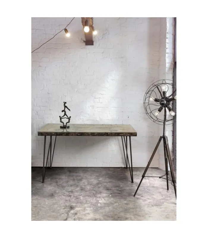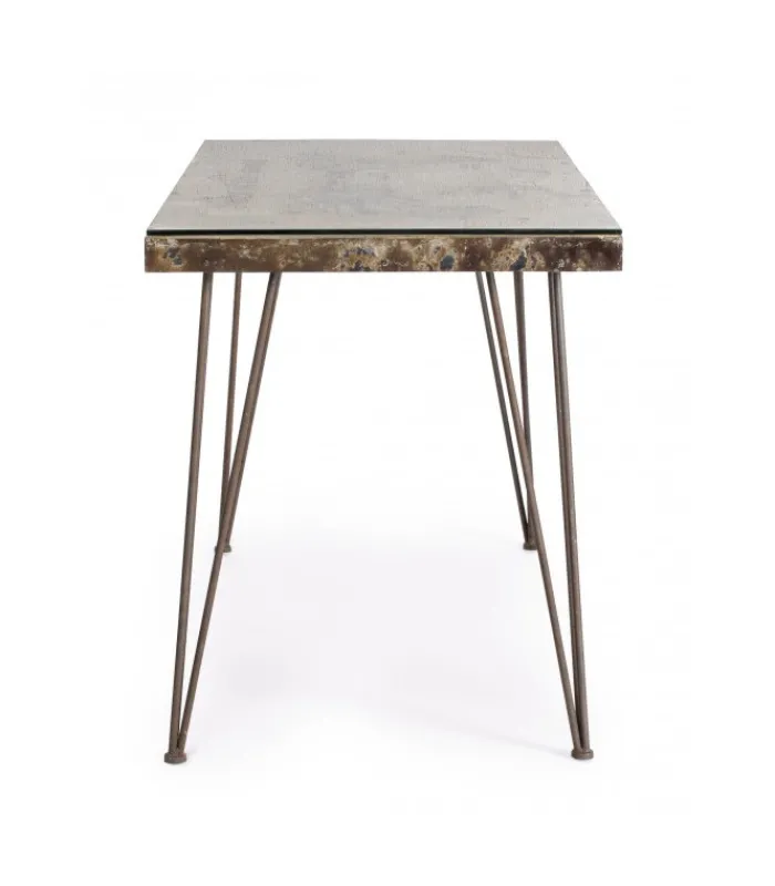 Struttura in acciaio anticato, piano in vetro e mdf con decorazione in cemento- gambe da assemblare.