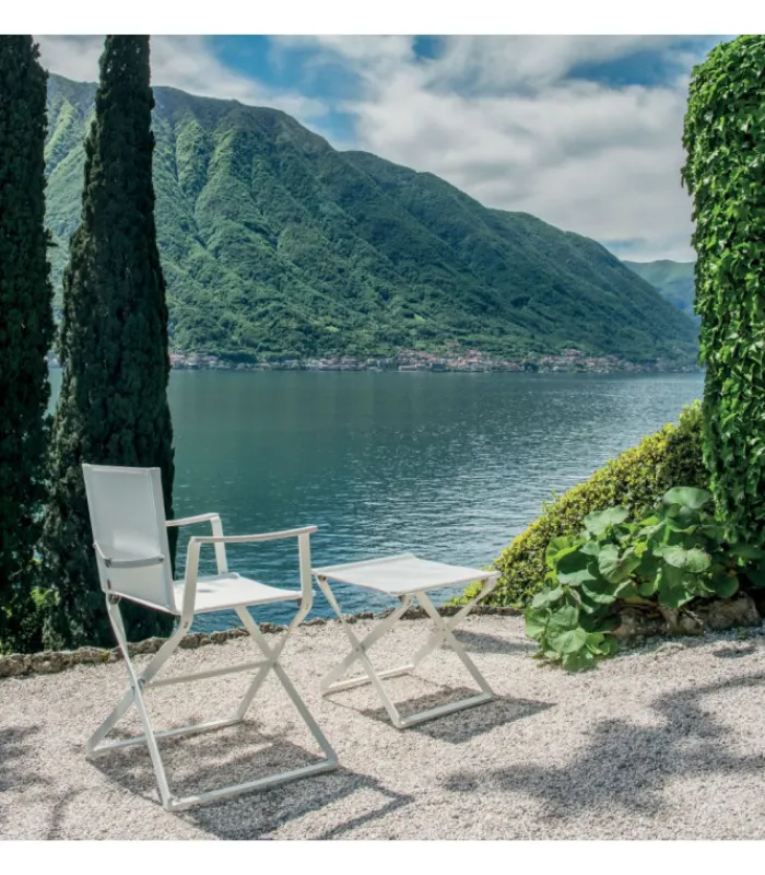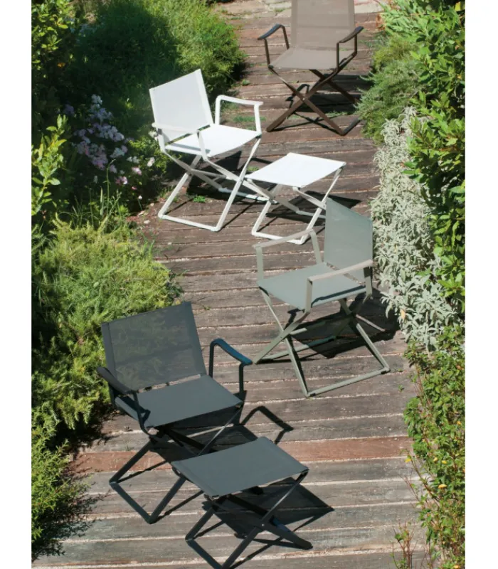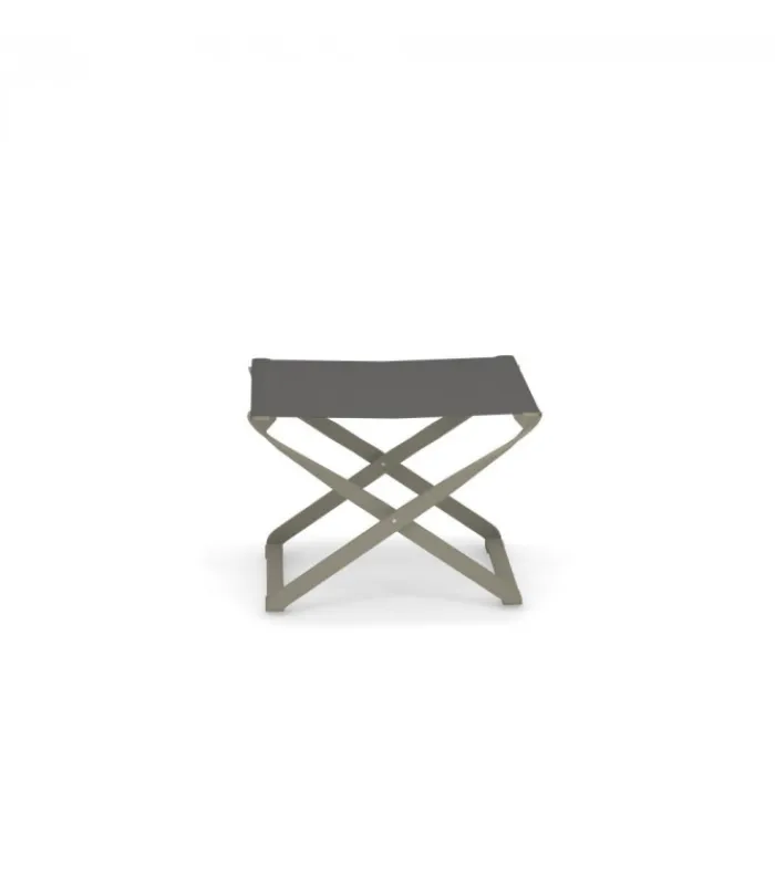 Appoggiapiedi con struttura in alluminio verniciato e seduta in Emu-Tex. È pieghevole ed è disponibile in 4 diversi abbinamenti di colore, scegli il tuo preferito.