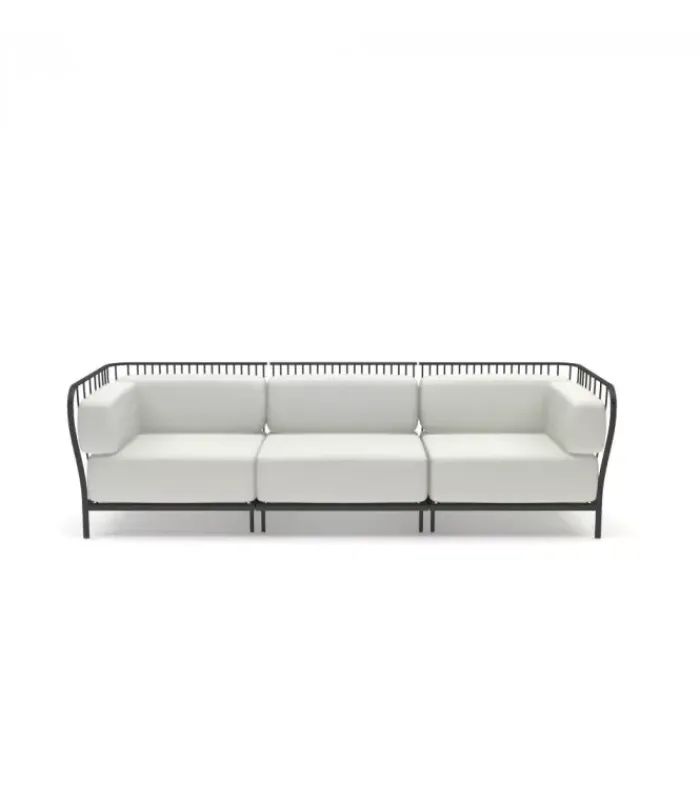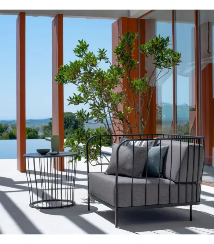 Il sistema di sedute Cannolè di Anton Cristell e Emanuel Gargano, ha una struttura interamente saldata composta da tubolari di acciaio zincato internamente ed esternamente. Sedile composto da una griglia di tondino zincato saldata su una riquadratura di tondino. Le zampe sono costituite da tubolare di acciaio. Saldatura MIG, pre-trattamento di sgrassaggio e cataforesi e finitura a polveri termoindurenti di poliestere. La collezione si compone di: Divano modulo corner, divano modulo lineare, pouf, poltrona bassa e tavolo basso. Tutti i cuscini Cannolè sono realizzati in gomma poliuretanica a cui viene aggiunto uno strato di resinato in fibra di poliestere, il tutto confezionato in federa interna in poliammide idrorepellente.
