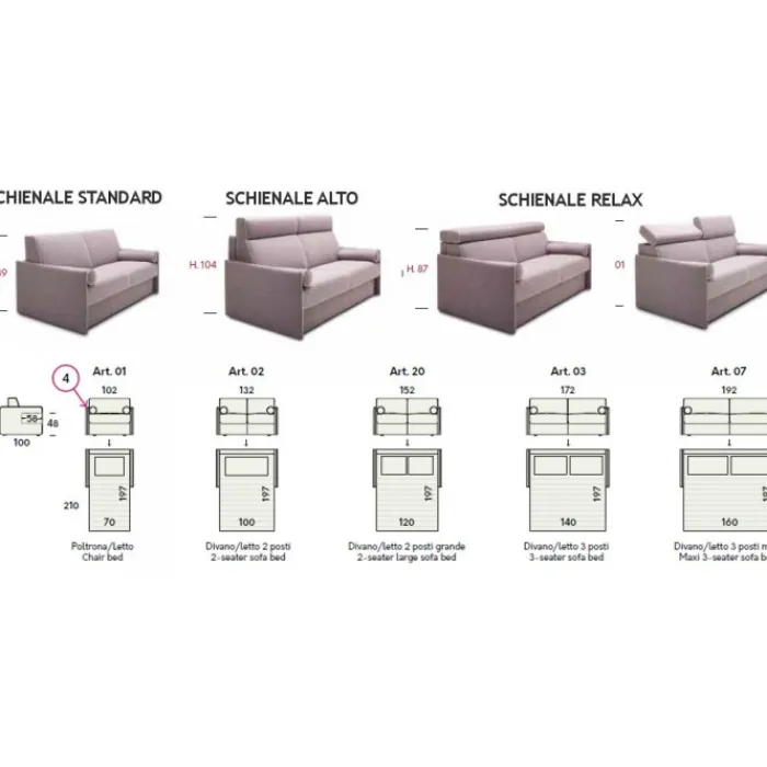 - Schienale con portaguanciale all’interno, esclusa la versione Relax
