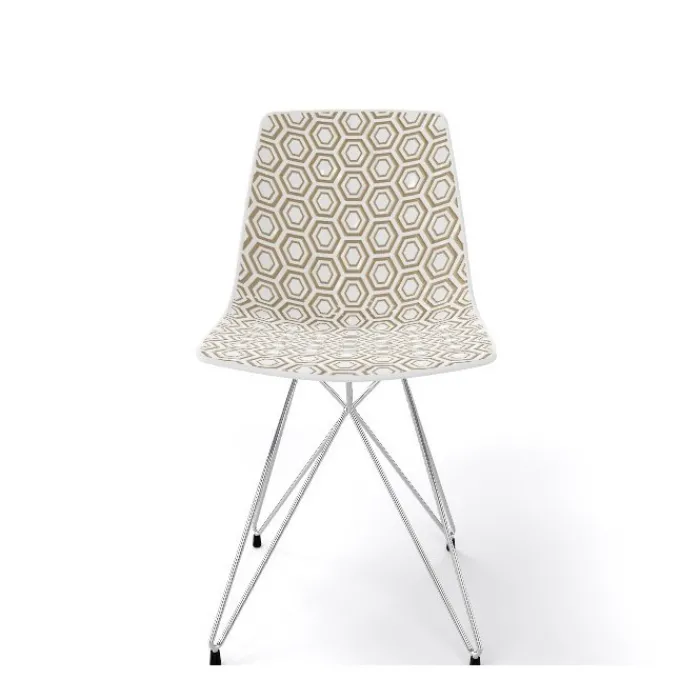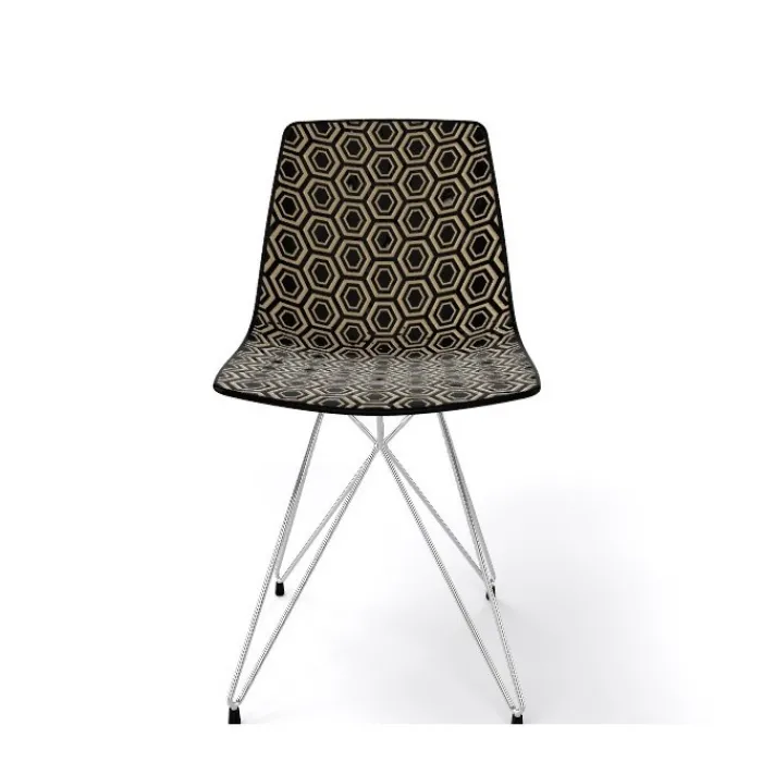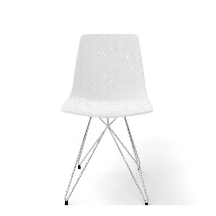 Struttura a traliccio in filo metallico cromata, verniciata bianca o nera.
