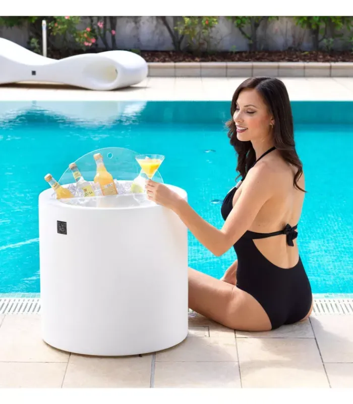 Molto più di un tavolino, un tavolino contenitore. I due scomparti, apribili singolarmente, sono l’ideale per riporre oggetti di uso quotidiano. Il kit per il drenaggio incluso rende la vasca più piccola ideale come contenitore per ghiaccio e bevande: un ice bucket che arreda e stupisce allo stesso tempo. Sarà lui la vera anima della festa!