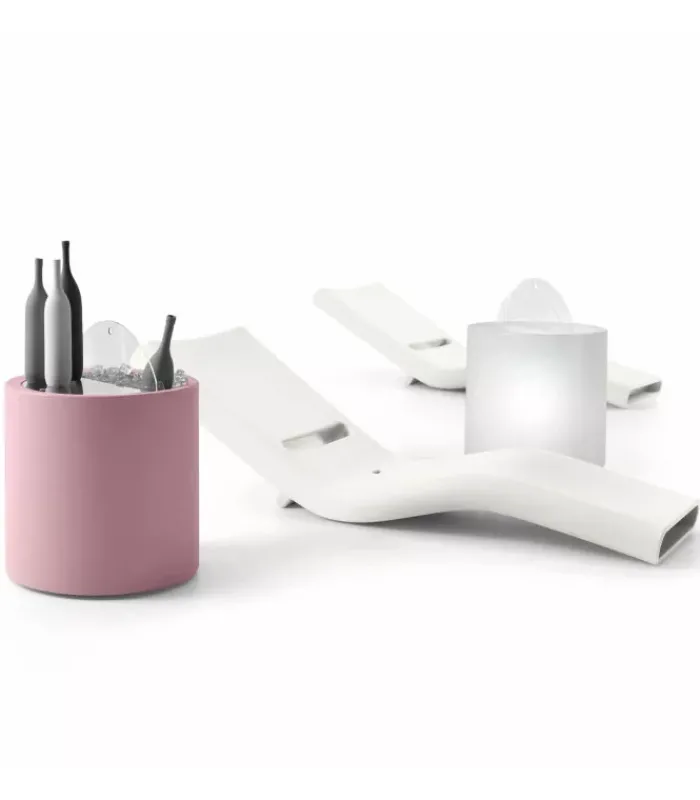 Tavolino, lampada, portabottiglie: BLOK PARTY nella sua versione luce si trasforma e si adatta ad ogni esigenza, creando la giusta atmosfera per le serate più esclusive. Dotato, nella vasca piccola, di drenaggio per l’acqua.