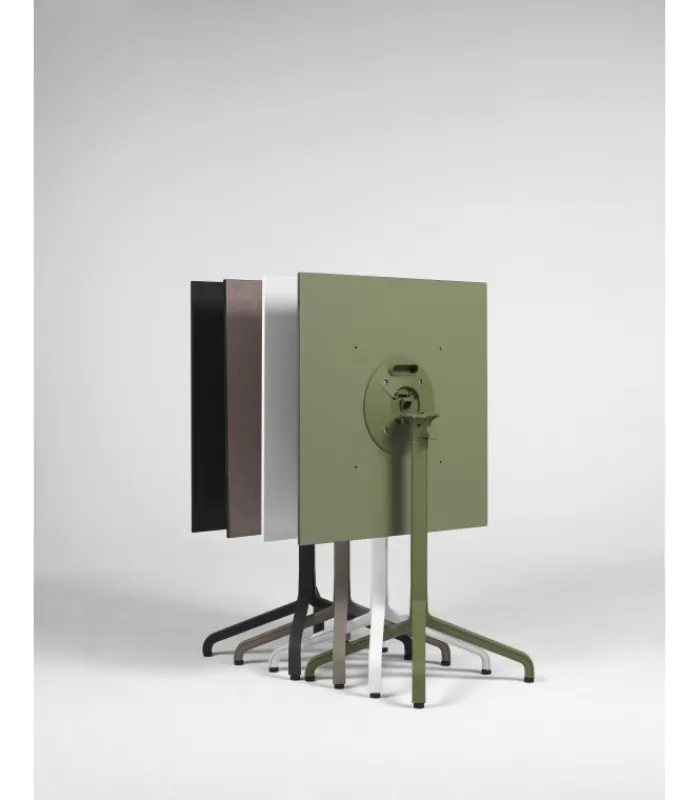 Tavolo contract FRASCA MINI FOLDING con gamba centrale a 4 piedi in alluminio verniciato ispirata ad un albero rovesciato. Innovativa e particolarmente funzionale per l’utilizzo professionale è adatta a piani Ø 60, Ø 70, Ø 80, 60×60, 70×70 e 80×80 cm. Per chi cerca un prodotto funzionale ed indistruttibile.