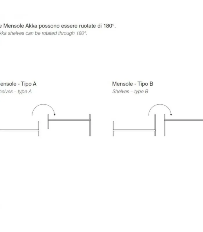 Le mensole Akka sono costruite in modo da poter essere reversibili dando la possibilità di comporre molto liberamente una libreria a scaffali.