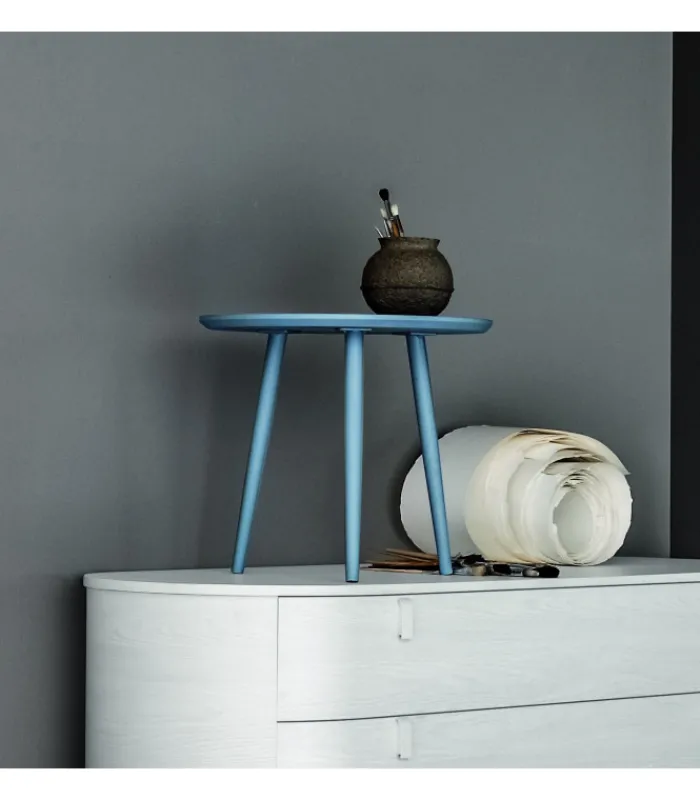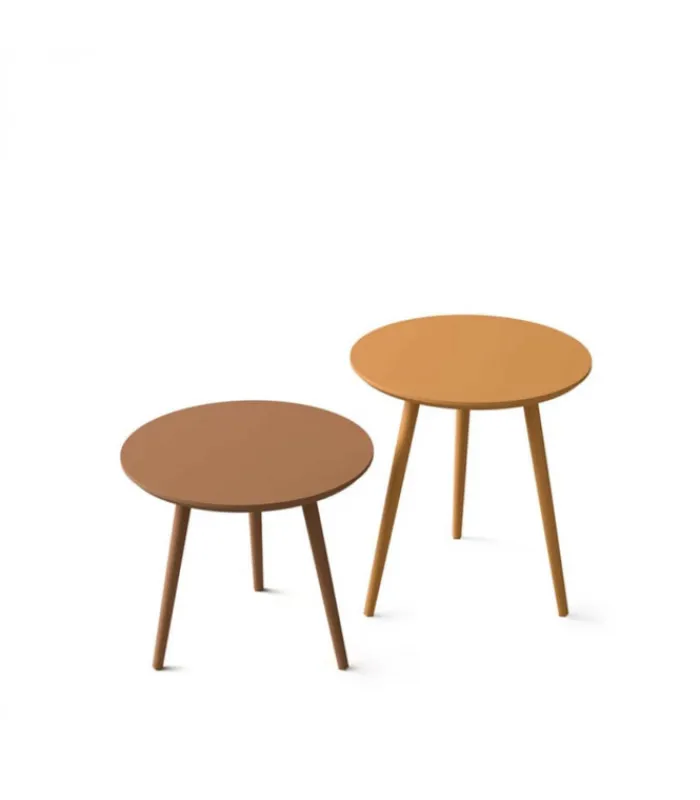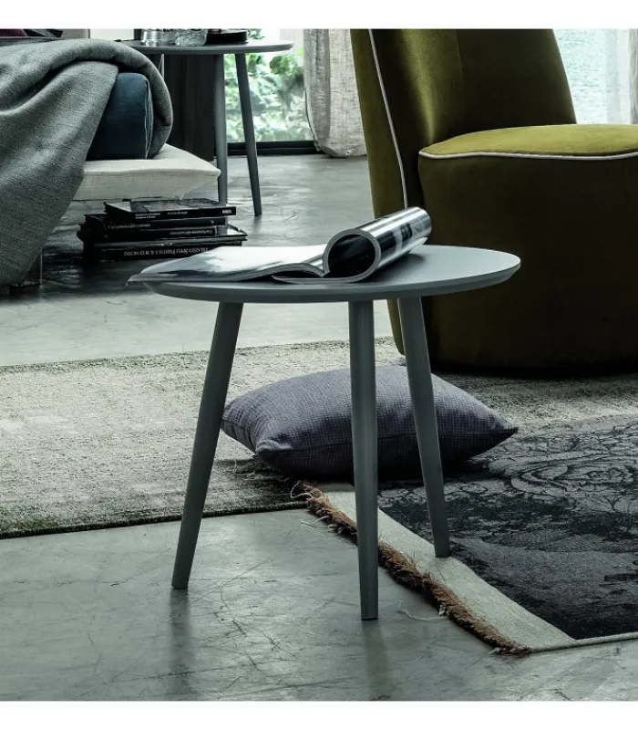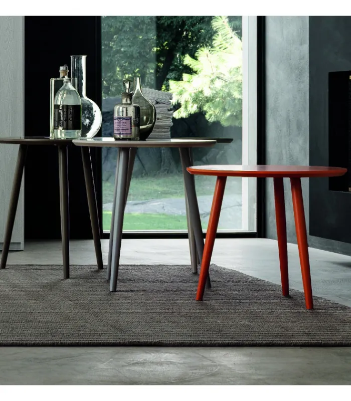 Tavolini a tre piedi disponibili in numerose tonalità di laccato opaco e in due altezze, per arredare la casa con stile e personalità.