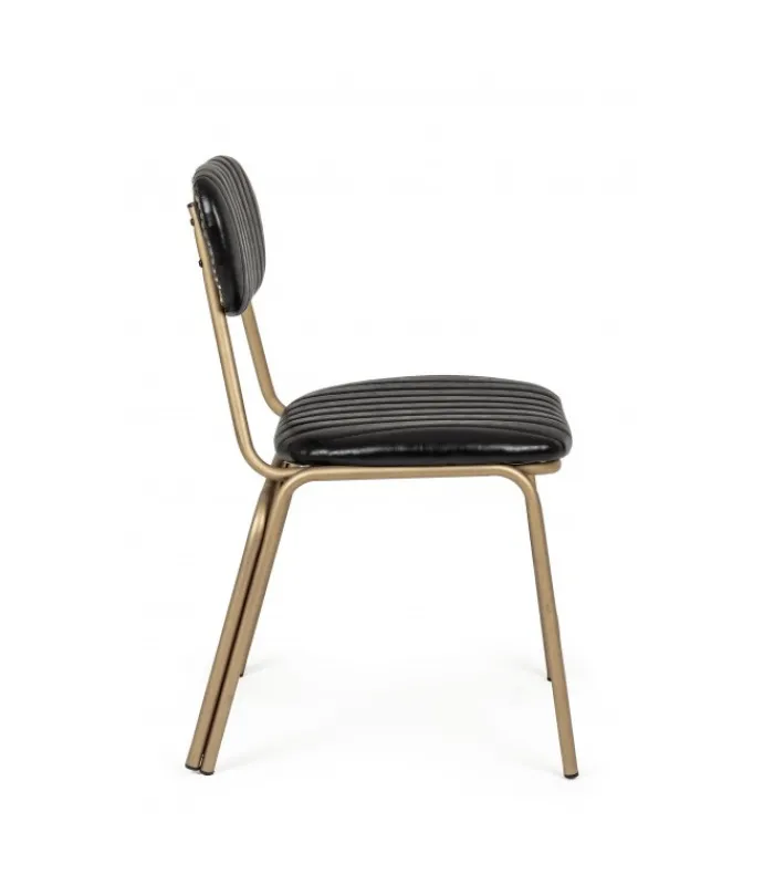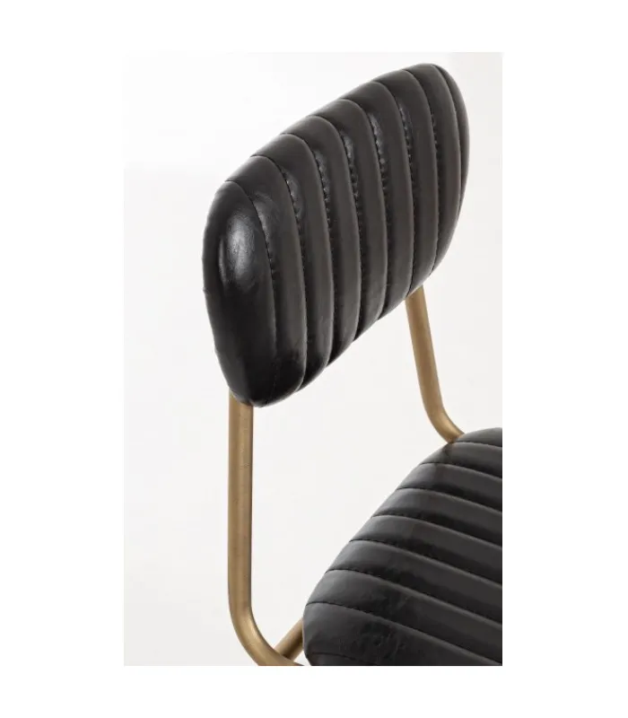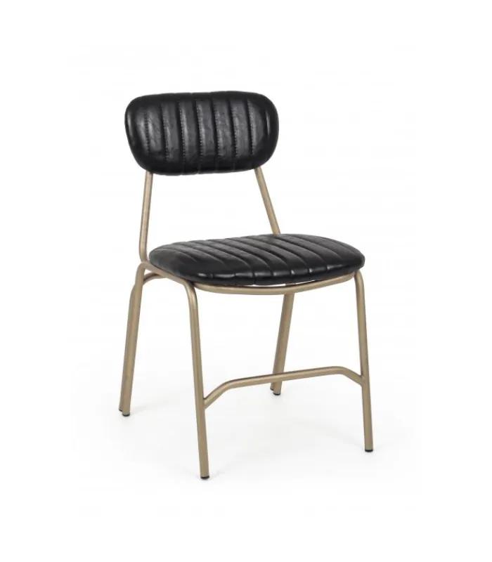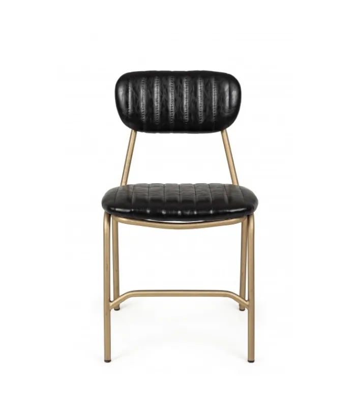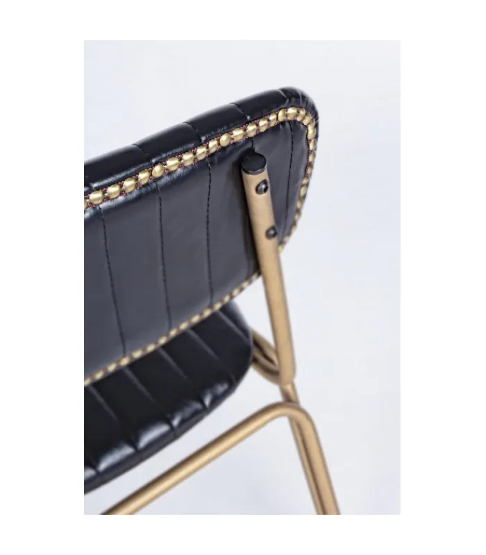 STRUTTURA IN ACCIAIO VERNICIATO A POLVERE EPOSSIDICA, RIVESTIMENTO IN ECOPELLE (PU). SCHIENALE CON APPLICAZIONE DI BORCHIE IN METALLO. DENSITA’ IMBOTTITURA IN SCHIUMA POLIURETANICA SEDUTA E SCHIENALE 21KG/M3.