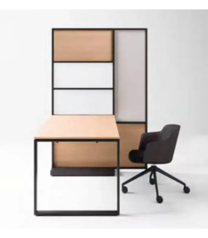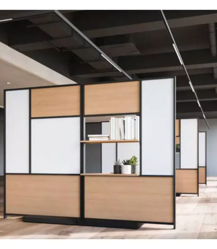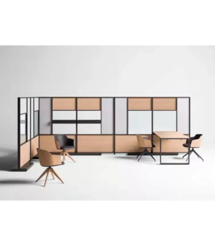 - Il divisorio Mond è progettato per essere autoportante, permettendo una facile installazione senza bisogno di fissaggi a parete o al soffitto. Questa caratteristica lo rende ideale per ambienti dinamici e flessibili che necessitano di riorganizzazioni frequenti.