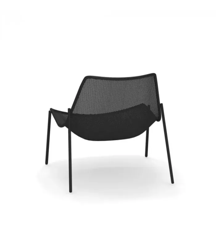 Poltrona con struttura in acciaio verniciato, la seduta e lo schienale sono in lamiera stirata, pre zincata a caldo e verniciata. È disponibile in quattro colori diversi ed è accessoriabile di cuscino (disponibile in diversi colori). È impilabile (per un massimo di 4 poltrone impilate) ed è venduta in stock da 2 poltrone.