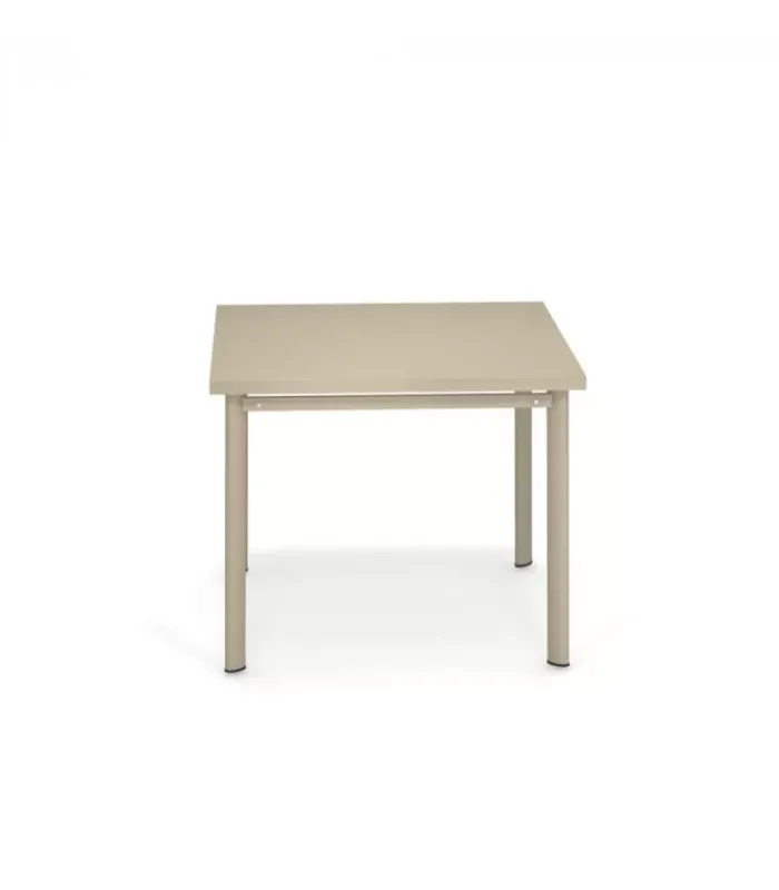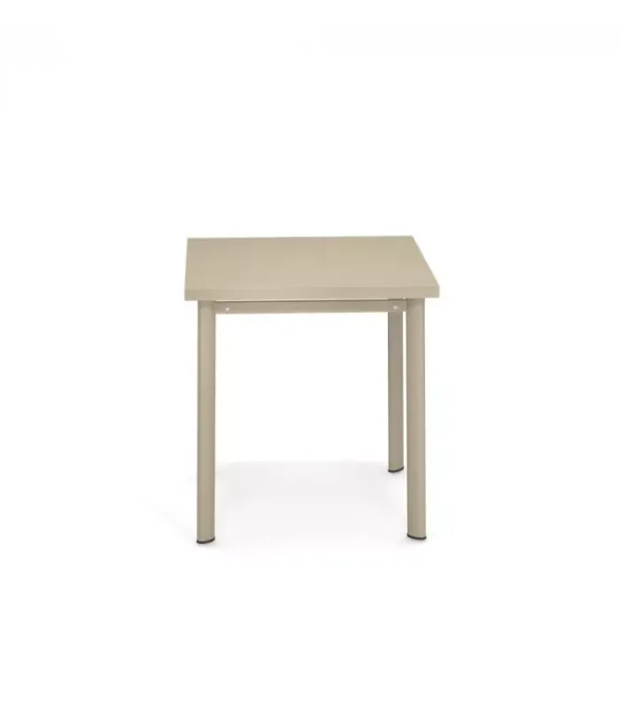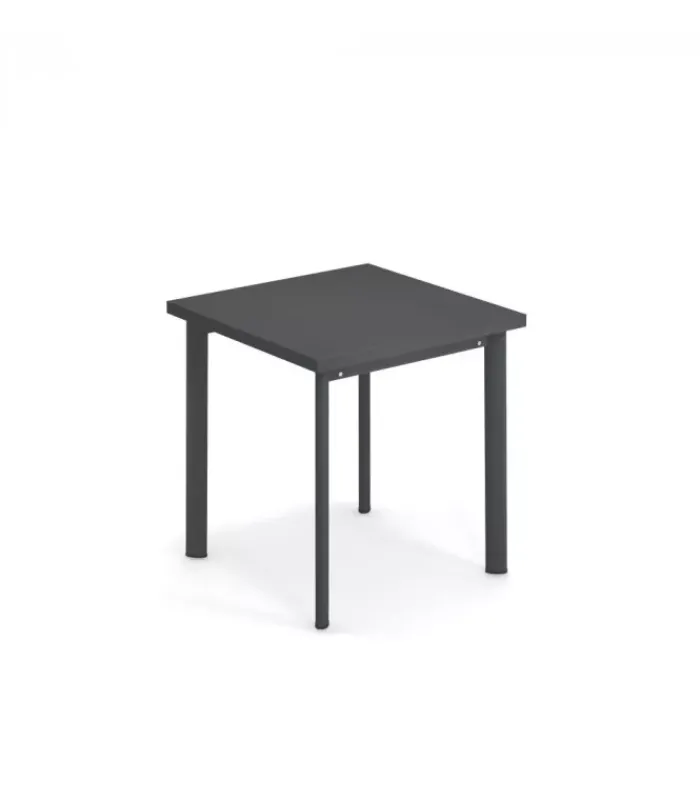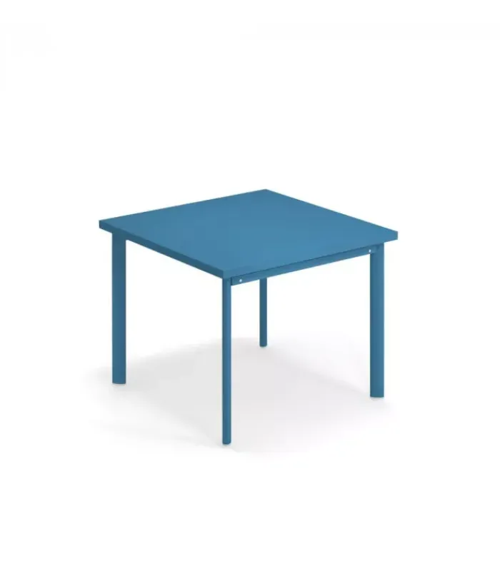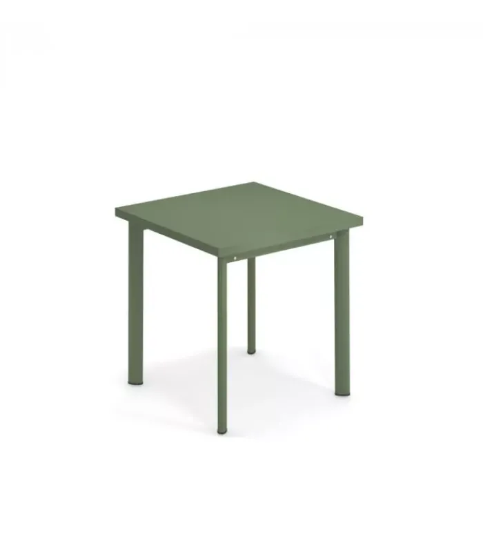 Tavolino da giardino con piano quadrato in lamiera pre zincata a caldo e verniciata, la struttura è in acciaio verniciato, disponibile in venti colori e due dimensioni differenti.