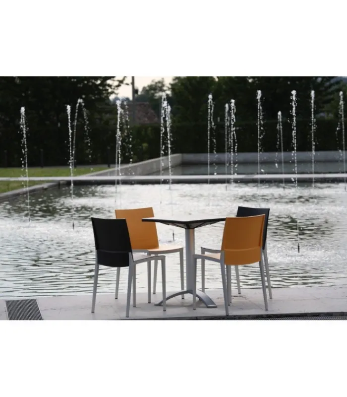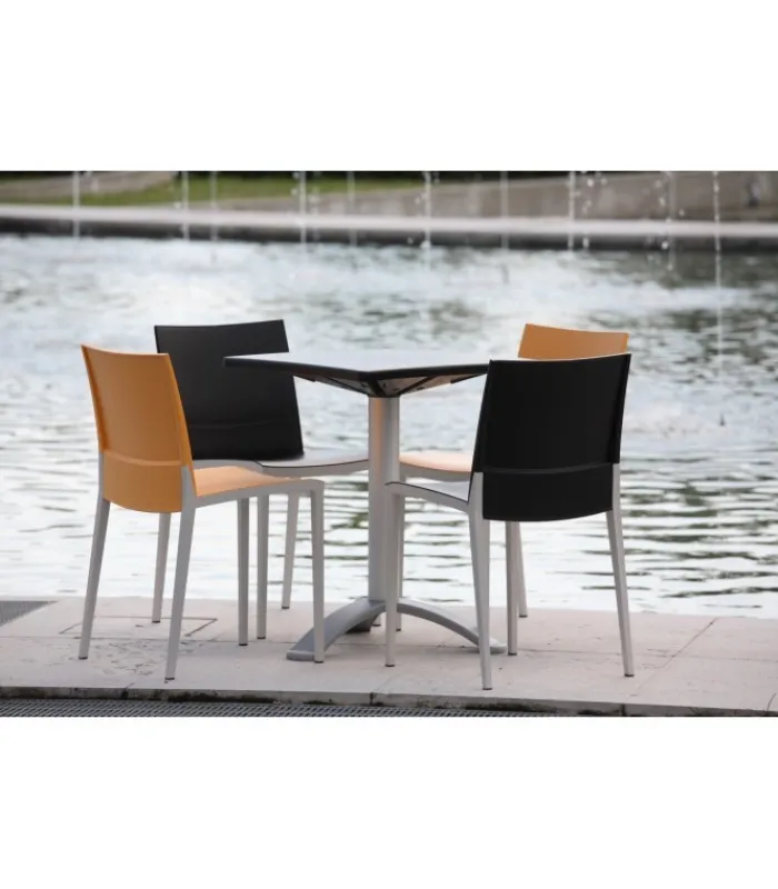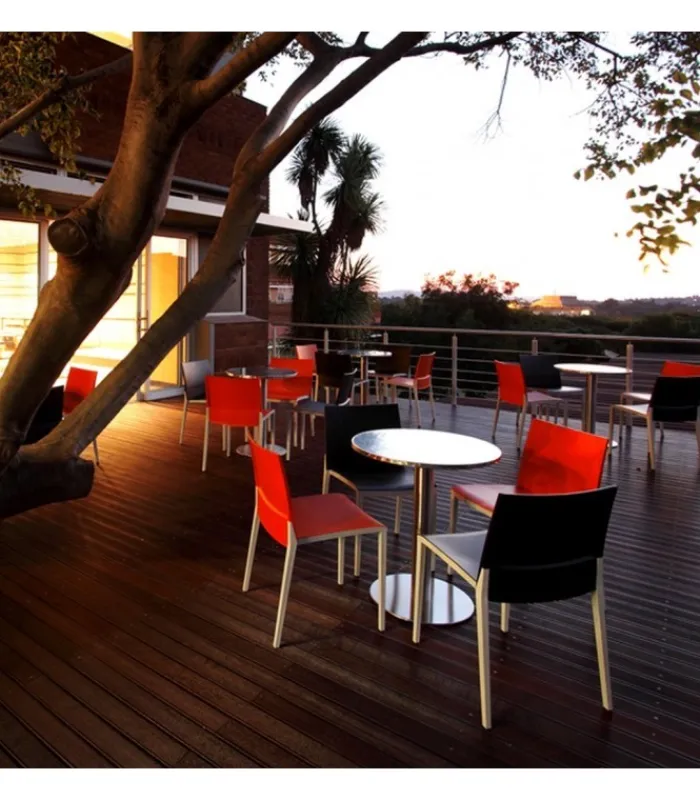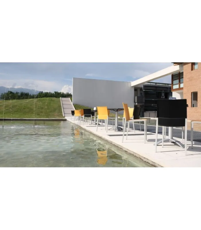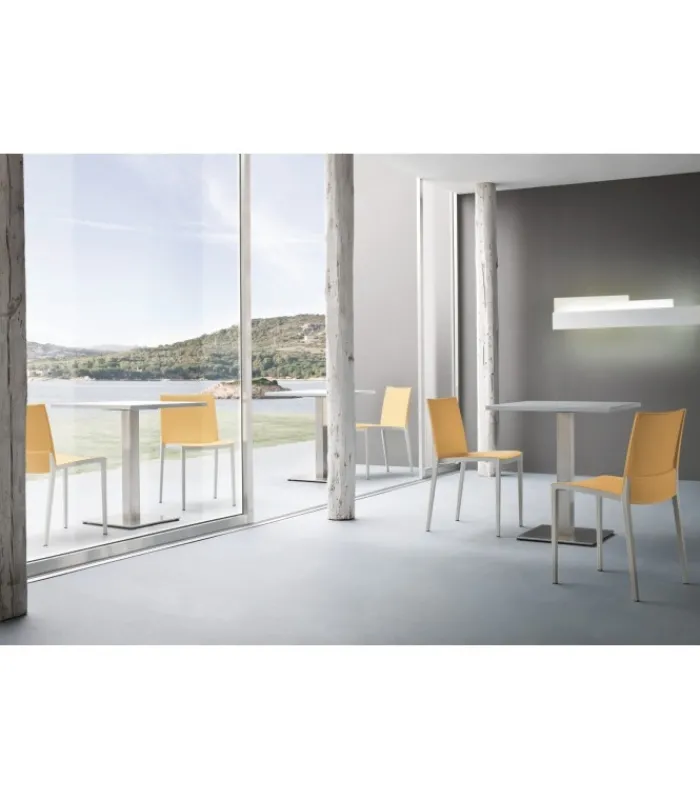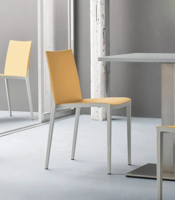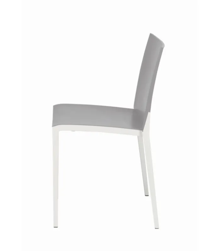 Seduta e schienale poggiano su di una struttura in tecnopolimero elastomero, che garantisce linee estremamente sottili senza però intaccare resistenza e stabilità. La seduta è impilabile, leggera e disponibile in una vasta gamma di colori.