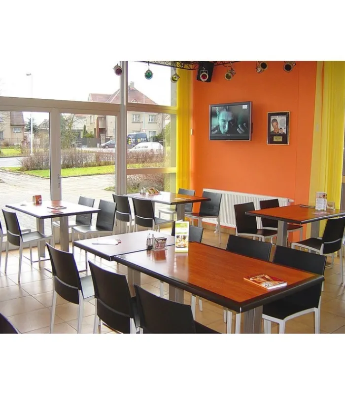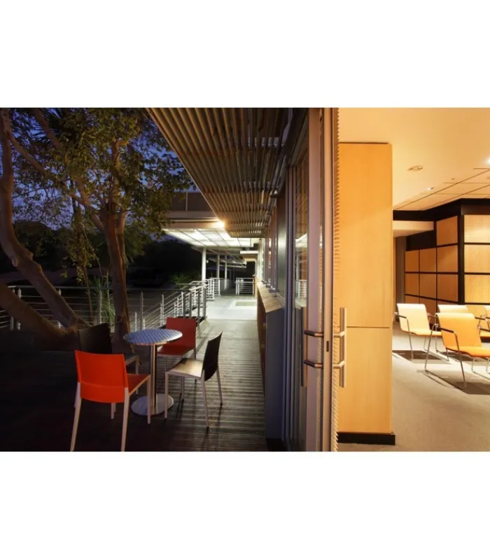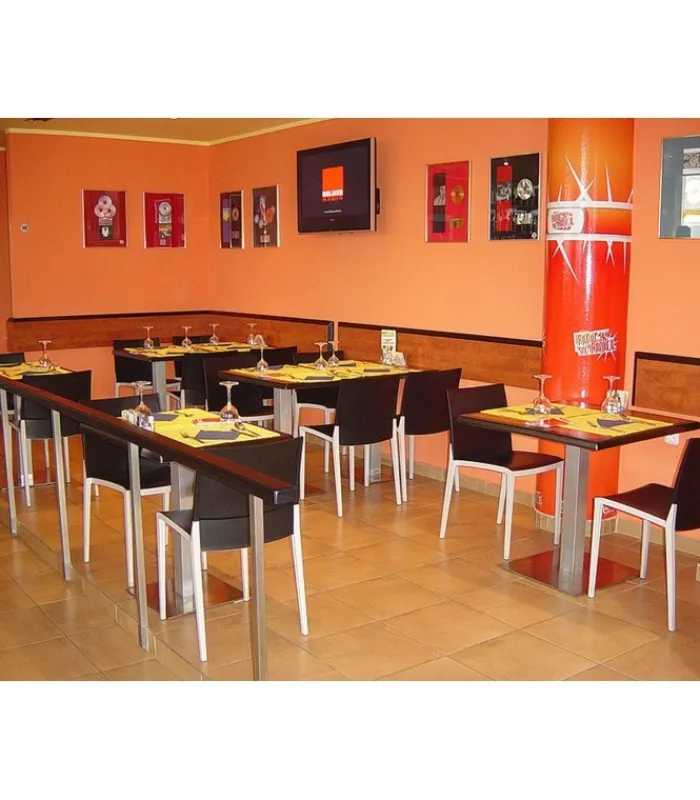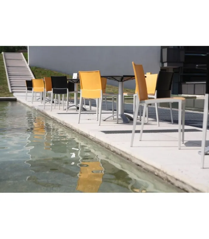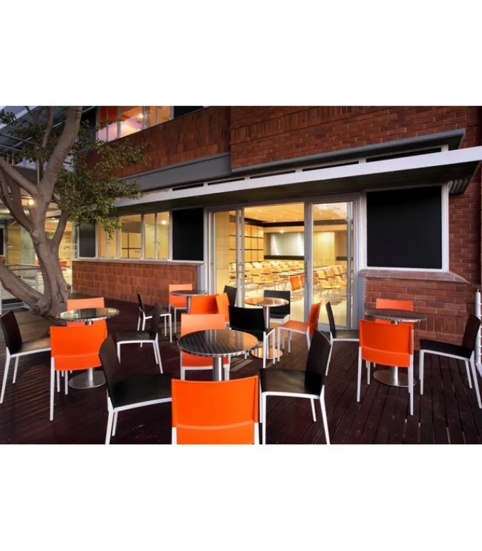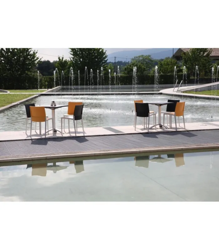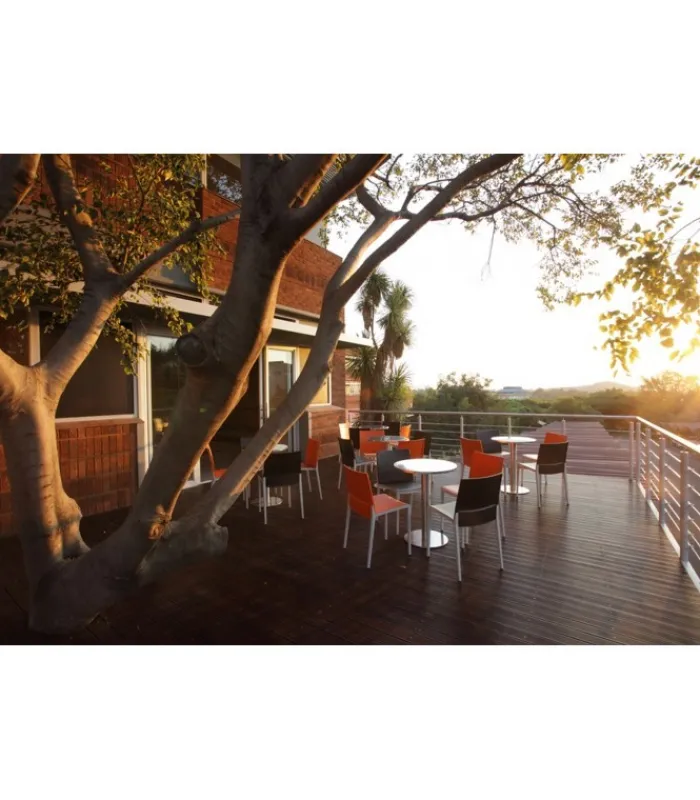 Seduta e schienale poggiano su di una struttura in tecnopolimero elastomero, che garantisce linee estremamente sottili senza però intaccare resistenza e stabilità. La seduta è impilabile, leggera e disponibile in una vasta gamma di colori.