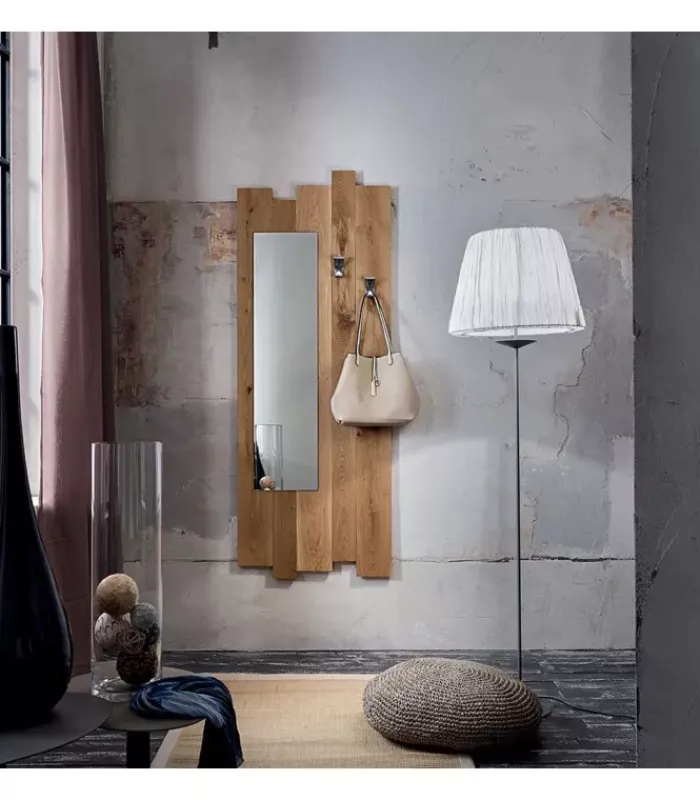 Programma composto da pannelli in legno massiccio di rovere con specchio Sp. 4 mm.
