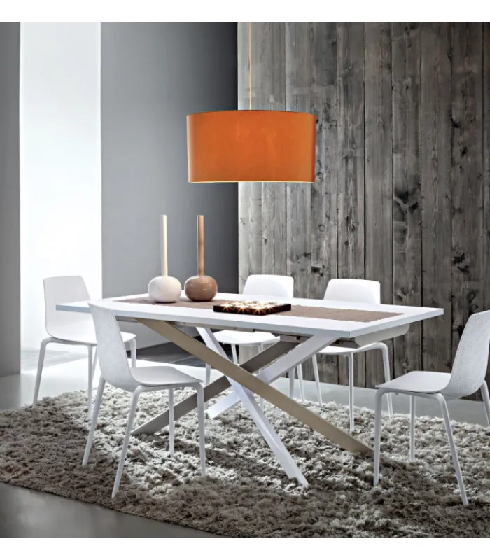 Il tavolo allungabile Renzo di La Primavera unisce design moderno e funzionalità. La sua solida struttura in metallo incrociato, verniciato a polveri epossidiche, garantisce stabilità e resistenza.