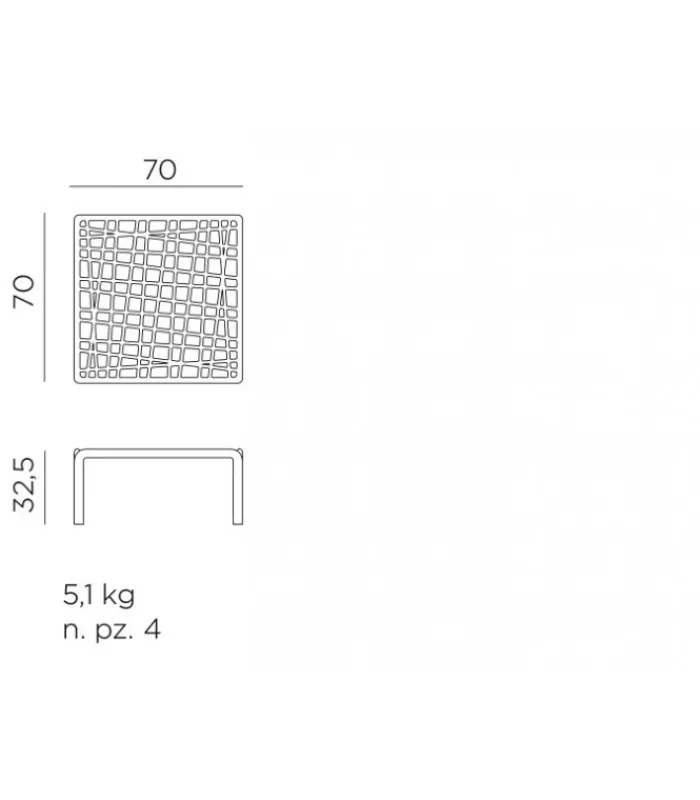 - monoblocco in resina di prima qualità con fibra di vetro (polipropilene fiber-glass trattato anti-uv e colorato in massa), dotata di piedini antiscivolo. Finitura OPACA