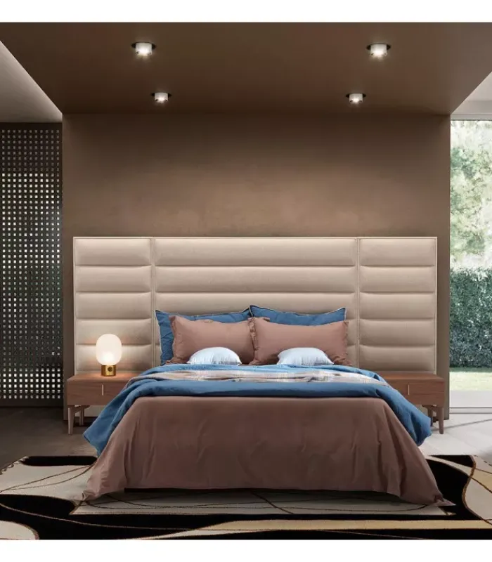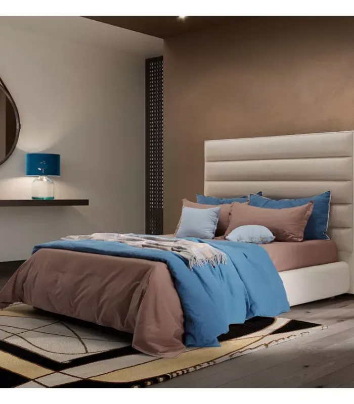 - La testiera molto alta non solo aggiunge un tocco di eleganza, ma funge anche da elemento decorativo, arricchendo l’estetica della tua stanza.