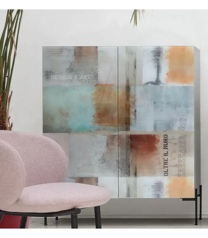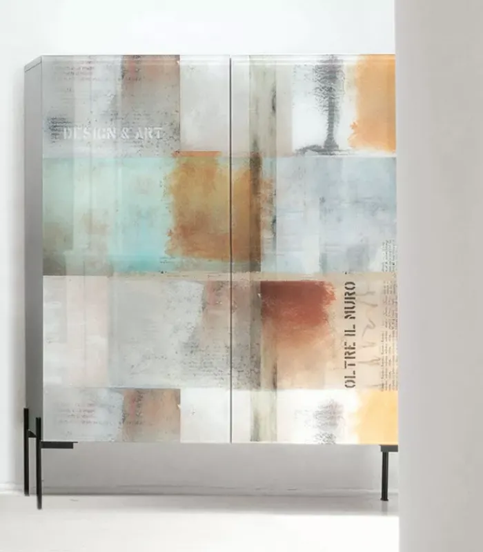– Materiali di pregio: struttura laccata con opzioni di finitura personalizzabili e frontali in vetro stampato con decori unici.