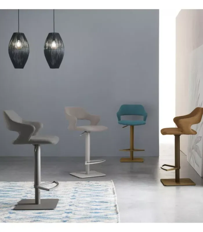 Sgabello SEATTLE SG regolabile in altezza con struttura in metallo verniciato e seduta rivestita in morbida microfibra effetto velluto. Altezza regolabile fino quasi a livello sedia. Sgabello dalla forma elegante e dai colori pacati, si distingue dai suoi colleghi per la raffinatezza che apporta all’arredamento.