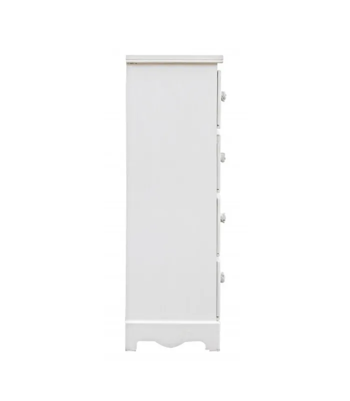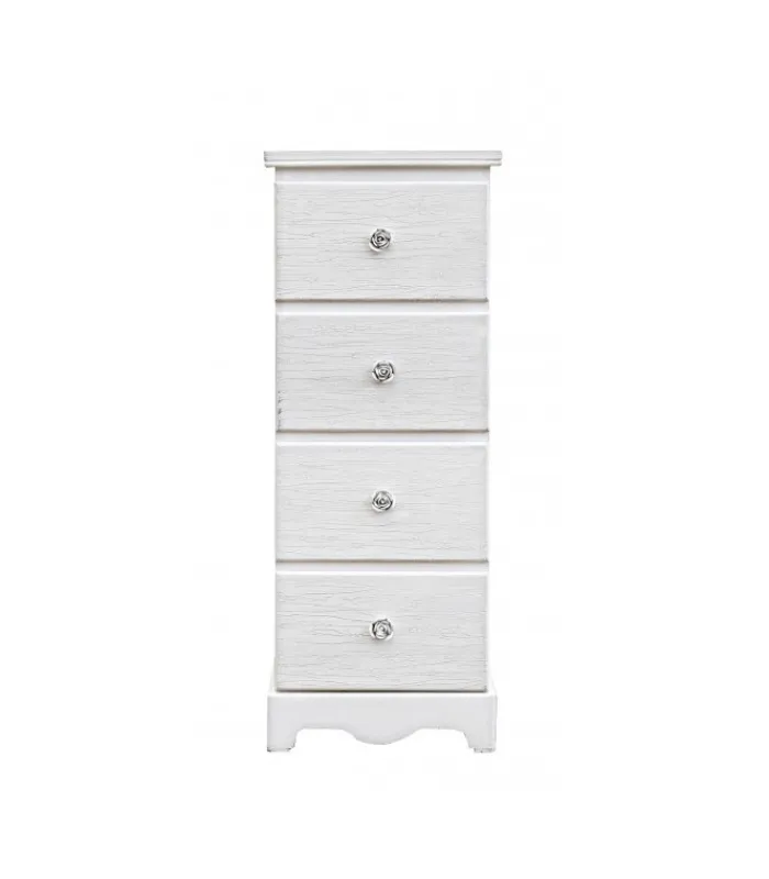 STRUTTURA IN MDF. FINITURA BIANCA OPACA, FRONTALI E PIANI CON EFFETTO DECAPATO. MANIGLIE IN POLIRESINA