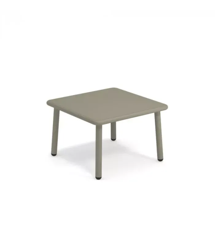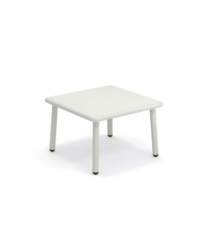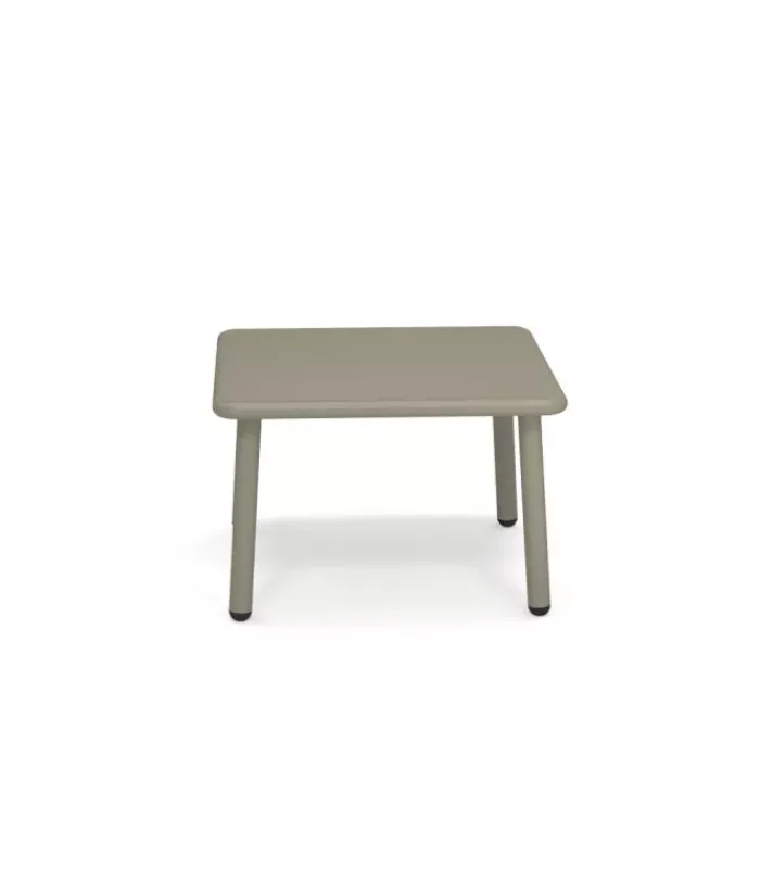 Tavolo da giardino con struttura e piano quadrato in alluminio verniciato, disponibile in quattro colori differenti.