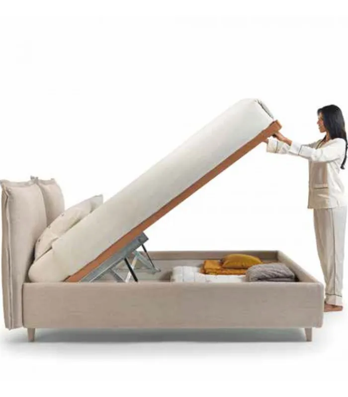 LETTO IMBOTTITO ALLISON CON CONTENITORE appartiene ad una linea di letti sartoriali, completamente personalizzabili ed adattabili a diverse tematiche di gusto, vengono forniti infatti tantissimi tessuti, pelli ed ecopelli, una serie di coordinati e diverse tipologie di reti con e senza meccanismo ma rigorosamente in legno multistrati di faggio evaporato made in Italy.