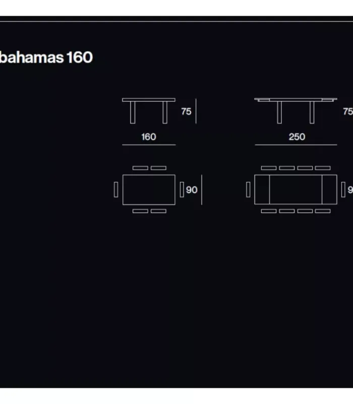 Dimensione 160/250 x 90 x h 75 (2 allunghe da 45) kg 70